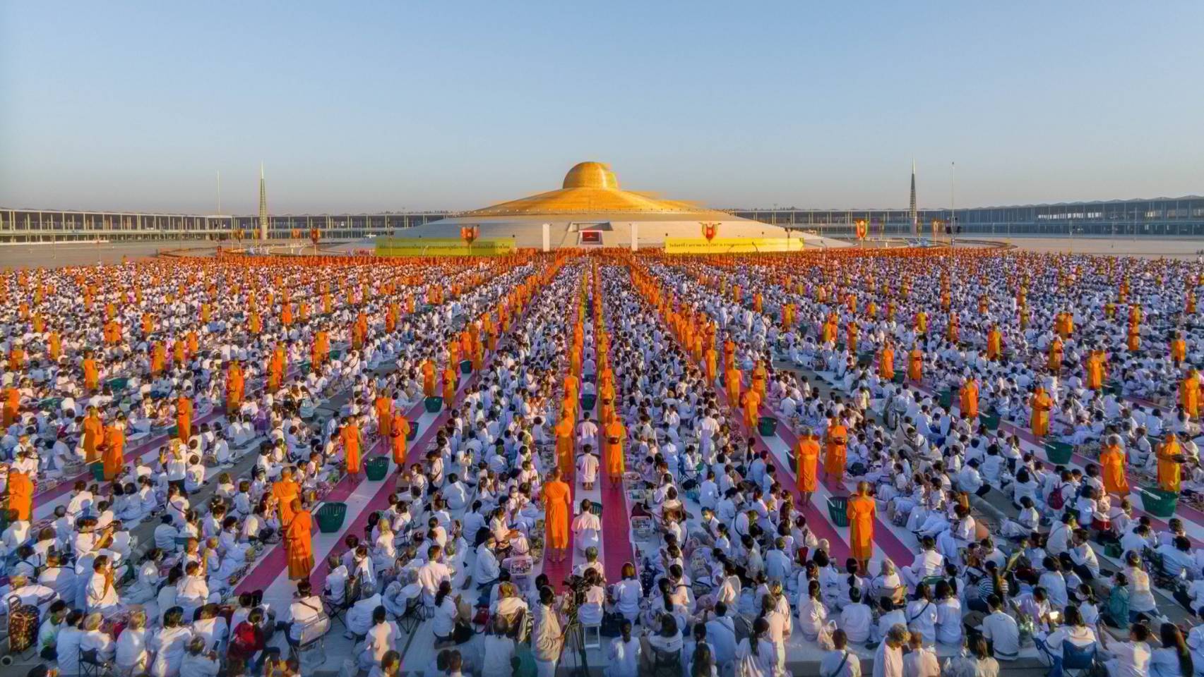 ปทุมธานี วัดพระธรรมกายชวนสวดมนต์ข้ามปี ชมสวนทุ่งดอกไม้ ตักบาตรต้อนรับศักราชใหม่ปี 2569