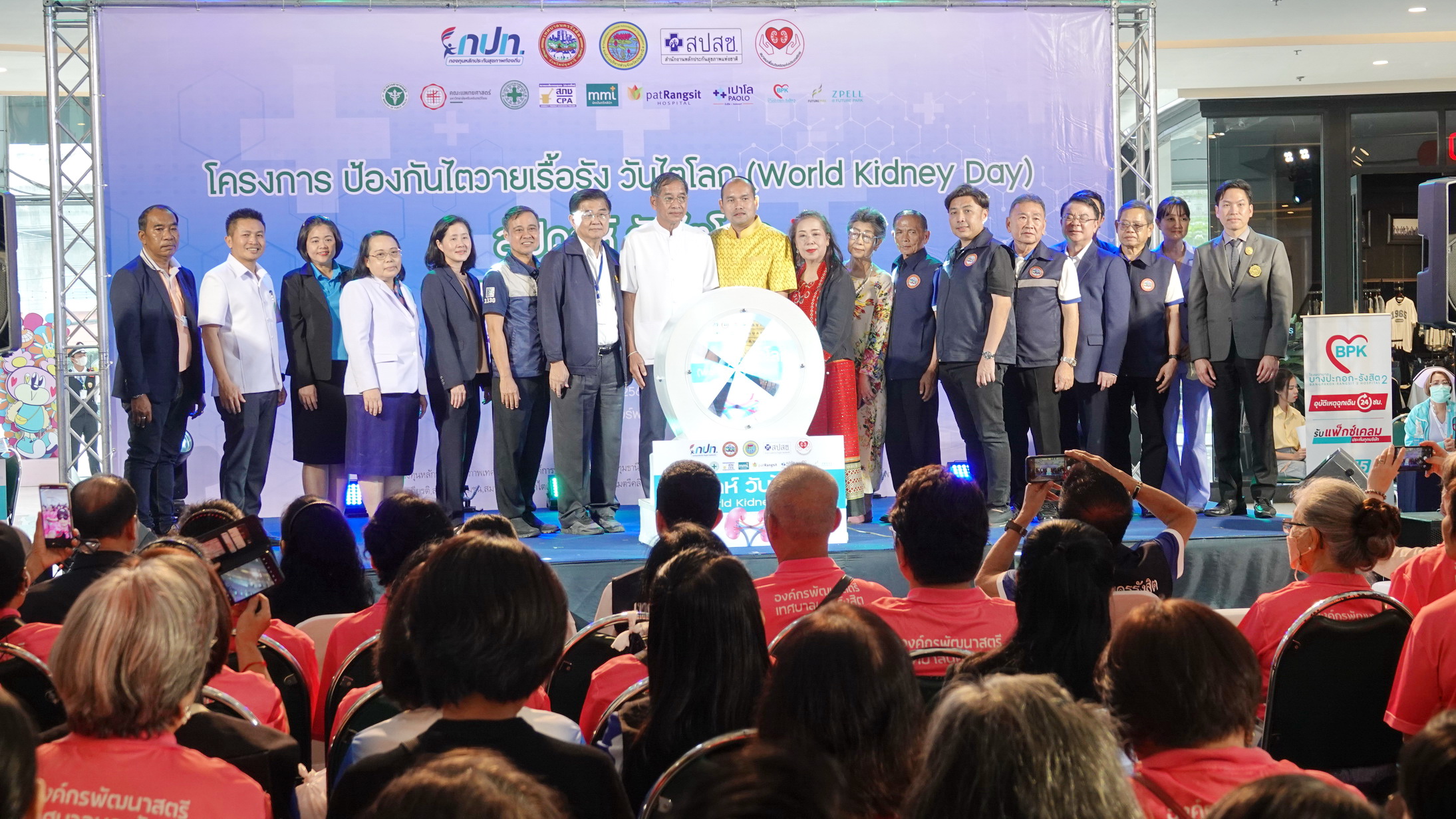 พล.ต.ท.คำรณวิทย์ ธูปกระจ่าง นายก อบจ.ปทุมธานี เปิดงานวันไตโลก แนะสร้างความรู้การกินยาชะลอไตเสื่อม ลดผู้ป่วยไตรายใหม่