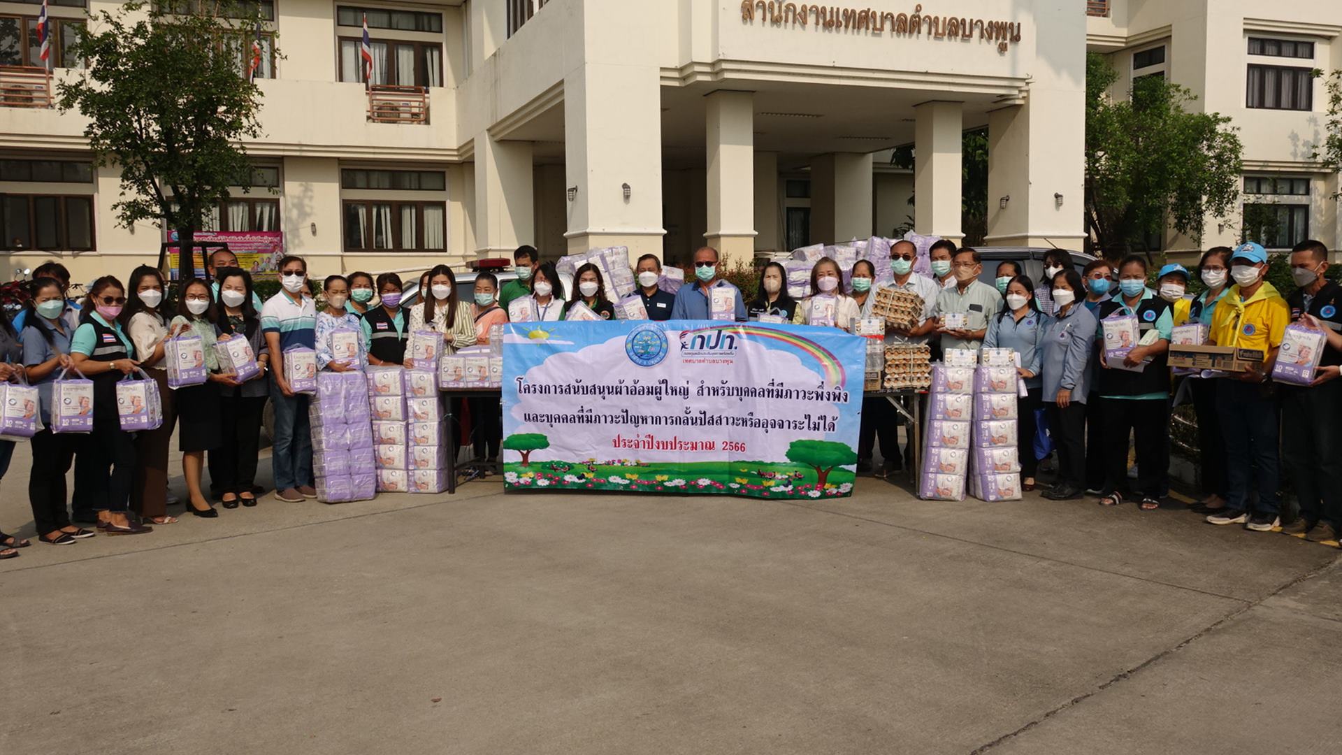 ปทุมธานี สปสช.เขต 4 สระบุรีร่วมกับเทศบาลตำบลบางพูน ลงพื้นมอบผ้าอ้อมสำเร็จรูปแก่ผู้ป่วยติดเตียง.