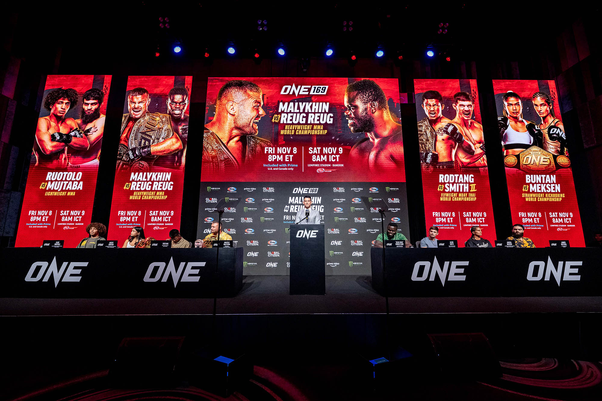 ONE จัดงานแถลงข่าวประกาศความยิ่งใหญ่ศึก ONE 169 ที่โยกจากเมืองแอตแลนตา สหรัฐอเมริกา กลับมาจัดที่สนามมวยเวทีลุมพินี ในวันเสาร์ที่ 9 พ.ย.นี้ ชมสดพร้อมกันมากกว่า 190 ประเทศทั่วโลก ในช่วงไพรม์ไทม์อเมริกา ตรงกับช่วงเช้าเวลาไทย คัดสรรนักสู้ระดับท็อป ขึ้นสังเวียนมอบความมันเป็นของขวัญแฟนกำปั้นส่งท้ายปี 2567 การันตีเดือดทุกคู่ พร้อมเผยแผนการจัดแข่งขันปี 2568 สุดยิ่งใหญ่