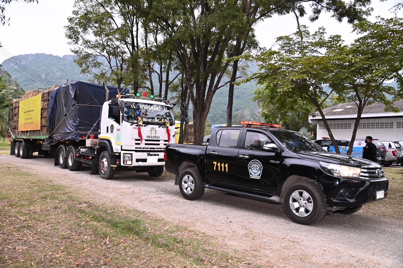 รัฐมนตรีว่าการกระทรวงเกษตรและสหกรณ์ กล่าวว่า จากการที่อุตุนิยมวิทยา ประเมินสถานการณ์ประเทศไทย ในช่วงเดือนตุลาคมจะมีลมตะวันตกเฉียงใต้ พัดปกคลุมทะเลอันดามันและภาคใต้ฝั่งตะวันตก กำลังค่อนข้างแรง ประกอบกับมีหย่อมความกดอากาศต่ำกำลังแรงปกคลุมบริเวณทะเลอันดามันตอนบน และพายุไต้ฝุ่น “เนสาท” บริเวณทะเลจีนใต้ตอนบน ลักษณะเช่นนี้ทำให้บริเวณภาคใต้ฝั่งตะวันตกมีฝนตกเพิ่มขึ้นและมีฝนตกหนักถึงหนักมากในบางพื้นที่ ส่งผลให้อาจเกิดอุทกภัยในวงกว้าง และกระทบต่อสัตว์เลี้ยงของเกษตรกรในหลายพื้นที่ โดยเฉพาะบริเวณภาคใต้ ที่มีความเสี่ยงที่จะเกิดภัยในช่วงปลายปีของทุกปี จนทำให้เกษตรกรมีความเดือดร้อน ขาดแคลนอาหารสาหรับสัตว์เลี้ยง จึงได้สั่งการให้เจ้าหน้าที่ทุกหน่วยงานในสังกัดกระทรวงเกษตรและสหกรณ์ประจำสำนักงานในพื้นที่ภาคใต้ ให้ดำเนินการเตรียมความพร้อมรองรับภัยพิบัติ และในวันนี้ได้ทำการปล่อยขบวนรถหญ้าอาหารสัตว์พระราชทาน พร้อมด้วยหน่วยบริการสัตวแพทย์เคลื่อนที่ เพื่อให้ความช่วยเหลือด้านเสบียงอาหารสัตว์ รวมทั้งแร่ธาตุและเวชภัณฑ์แก่สัตว์เลี้ยงของเกษตรกรที่อยู่ในพื้นที่ และให้ศูนย์วิจัยและพัฒนาอาหารสัตว์ในพื้นที่ภาคใต้ ได้แก่ ศวอ.เพชรบุรี / ศวอ.ประจวบคีรีขันธ์ / ศวอ.กาญจนบุรี / ศวอ.สุพรรณบุรี / ศวอ.ชุมพร / ศวอ.พัทลุง / ศวอ.สุราษฎร์ธานี / ศวอ.ตรัง / ศวอ.นครศรีธธรมราช / ศวอ.สตูล / และศวอ. นราธิวาส สนับสนุนเสบียงสัตว์เคลื่อนย้ายลงเสบียงอาหารสัตว์ลงไปไว้ในพื้นที่น้ำท่วมซ้ำซาก เพื่อเตรียมความพร้อมล่วงหน้าในการให้ความช่วยเหลือ โดยได้จัดเตรียมคลังเสบียงไว้ทั้งสิ้น 12 จุด ในพื้นที่ 11 อำเภอ 8 จังหวัด จำนวนเสบียงสัตว์ทั้งสิ้น 95,000 กิโลกรัม และหน่วยสัตวแพทย์เคลื่อนที่ 15 หน่วย นอกจากนี้ ยังได้กำชับเจ้าหน้าที่ทุกหน่วยงานในสังกัดกระทรวงเกษตรและสหกรณ์ ให้เร่งดำเนินการตรวจสอบและให้ความช่วยเหลือเยียวยาเกษตรกร ตามระเบียบกระทรวงการคลังว่าด้วยเงินทดรองราชการเพื่อช่วยเหลือผู้ประสบภัยพิบัติกรณีฉุกเฉิน พ.ศ. 2562 หลังจากน้ำลดเข้าสู่สภาวะปกติแล้วต่อไป