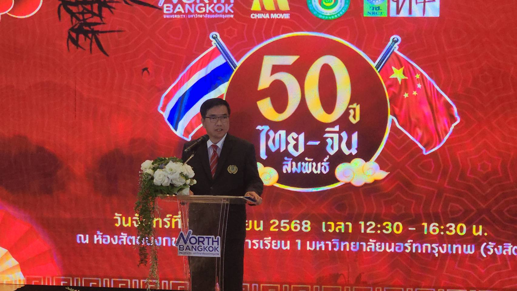 ผู้ช่วยศาสตราจารย์ ดร.สิทธิพร ประวัติรุ่งเรือง อธิการบดีมหาวิทยาลัยนอร์ทกรุงเทพ กล่าวว่า "การจัดงานในครั้งนี้ จัดขึ้นเพื่อเสริมสร้างศักยภาพของสื่อบันเทิงให้เป็นทั้งเครื่องมือทางเศรษฐกิจและวัฒนธรรมที่สะท้อนให้เห็นถึงความสัมพันธ์ไทย–จีน ที่ยาวนานตลอดครึ่งศตวรรษ อีกทั้งยังเป็นการขยายโอกาสความร่วมมือในมิติการพัฒนาเครือข่ายความร่วมมือทางวิชาการ ทางเศรษฐกิจ ทางวัฒนธรรม และทางอุตสาหกรรมสร้างสรรค์ที่มีบทบาทสำคัญในการใช้สื่อบันเทิงเพื่อสร้างคุณค่าแก่สังคม เป็นสะพานเชื่อมวัฒนธรรมและผู้คนเข้าด้วยกัน เราหวังเป็นอย่างยิ่งว่า งานในวันนี้จะเป็นจุดเริ่มต้นของการสร้างสรรค์ผลงานร่วมกันที่แข็งแกร่งและยั่งยืนยิ่งขึ้น เป็นพลังขับเคลื่อนความสัมพันธ์ไทย–จีน ให้แน่นแฟ้นยิ่งขึ้น ในอีก 50 ปีข้างหน้า"