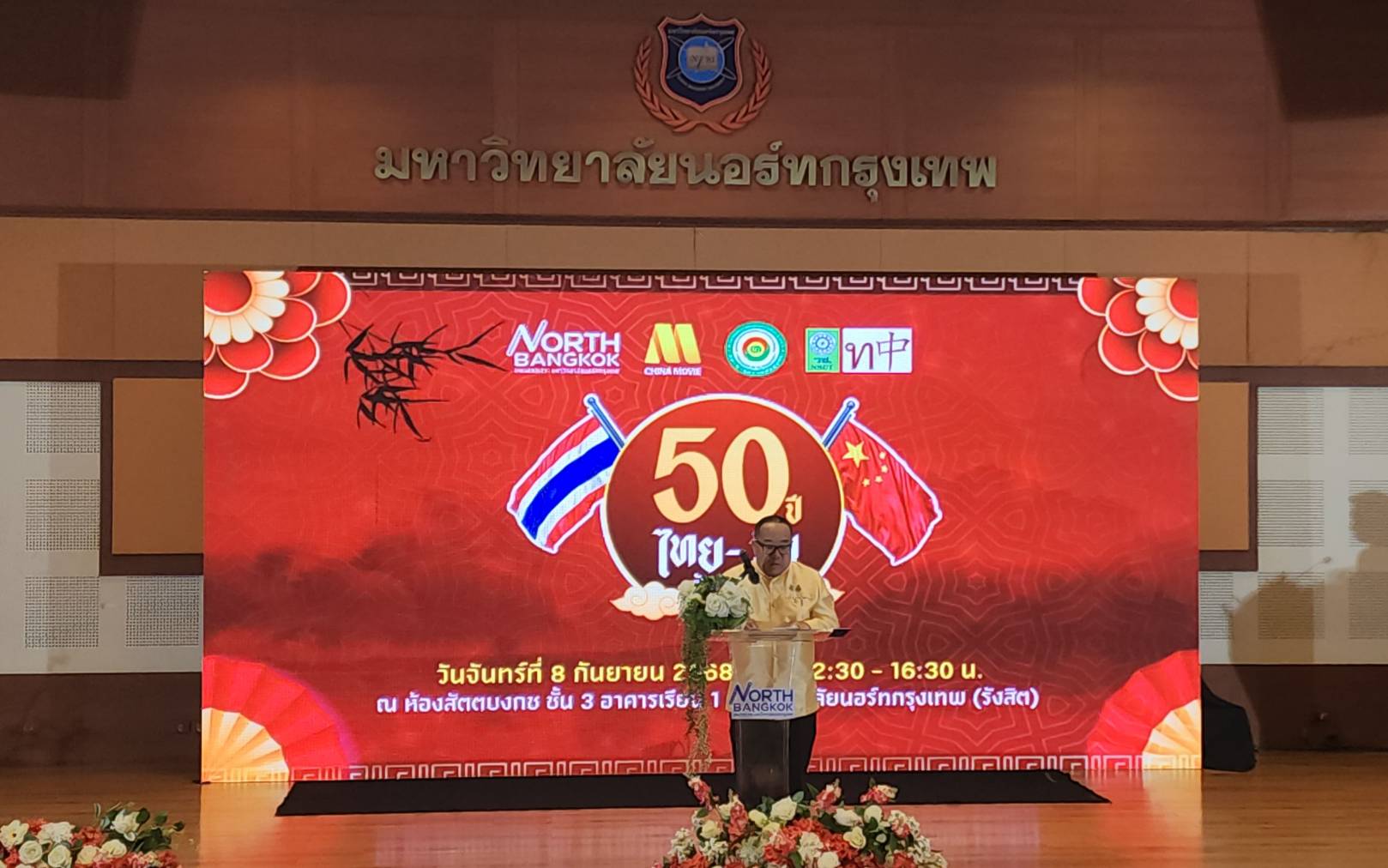 เมื่อวันที่ 8 กันยายน 2568 มหาวิทยาลัยนอร์ทกรุงเทพ ร่วมกับ China Movie Channel สถาบันวิจัยพัฒนาเศรษฐกิจและการศึกษา บีอาร์ไอ สมาคมการค้าการลงทุนเส้นทางสายไหมไทย–จีน และศูนย์วิจัยยุทธศาสตร์ไทย-จีน สำนักงานการวิจัยแห่งชาติ จัดงานปาฐกถา ในหัวข้อ "50 ปี ไทย-จีน สัมพันธ์: โอกาสและศักยภาพของสื่อบันเทิงบนความร่วมมือระหว่างประเทศ" และกิจกรรม Chinese Film Week: การฉายภาพยนตร์รอบพิเศษเรื่อง “The Composer” ณ ห้องประชุมสัตตบงกช มหาวิทยาลัยนอร์ทกรุงเทพ วิทยาเขตรังสิต เพื่อเฉลิมฉลองครบรอบ 50 ปี การสถาปนาความสัมพันธ์ทางการทูตระหว่างสองประเทศ (1 กรกฎาคม 2518 – 1 กรกฎาคม 2568) และสำรวจบทบาทของสื่อบันเทิงในการเป็นเครื่องมือสำคัญด้านการทูตทางวัฒนธรรม
