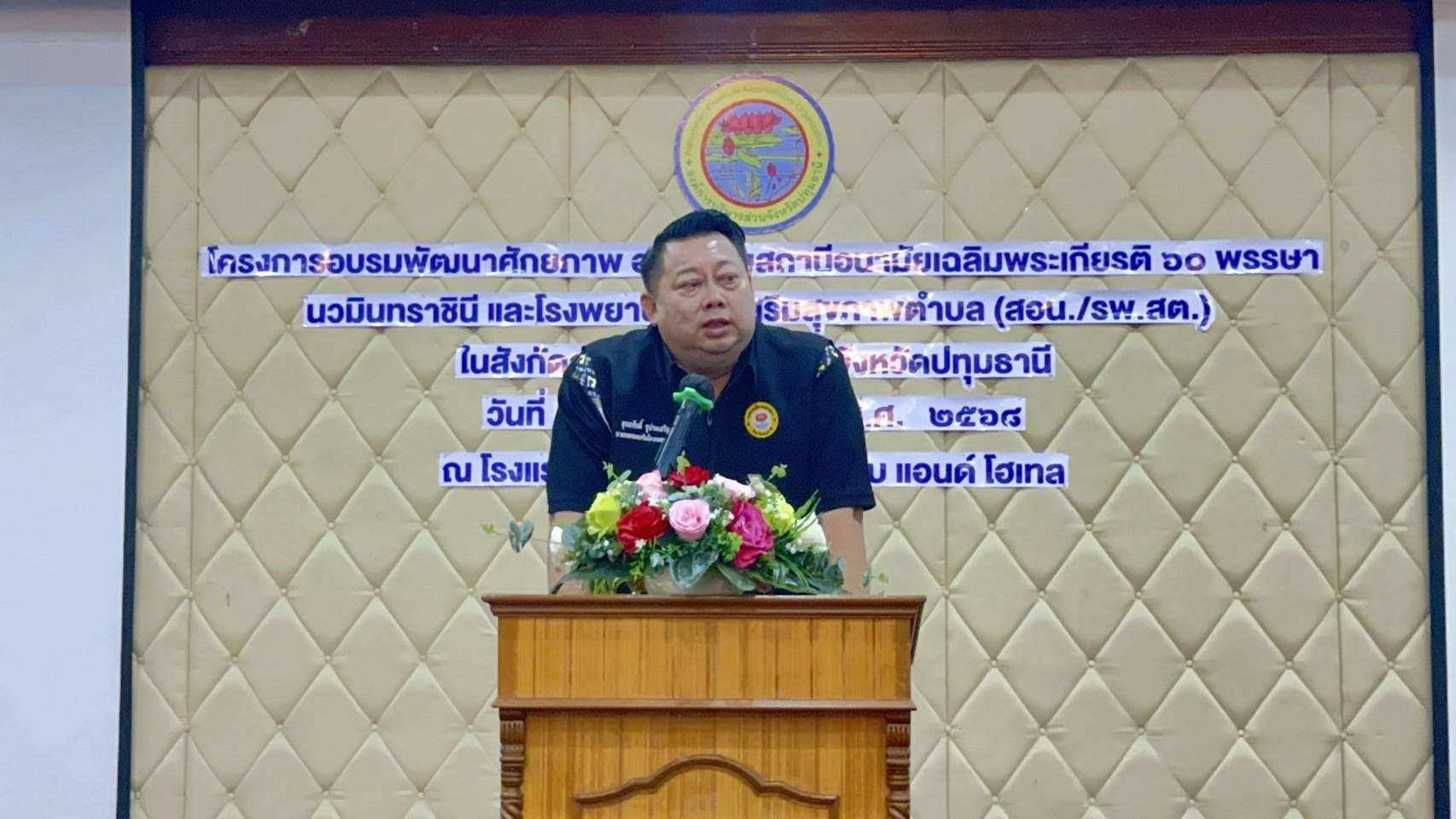 เมื่อวันที่ 8 กันยายน พ.ศ. 2568 ที่ โรงแรม ไพน์เฮิร์สท กอล์ฟ คลับ แอนด์ โฮเทล ตำบลคลองหนึ่ง อำเภอคลองหลวง จังหวัดปทุมธานี พลตำรวจโท คำรณวิทย์ ธูปกระจ่าง นายกองค์การบริหารส่วนจังหวัดปทุมธานี เป็นประธานในพิธีเปิดโครงการอบรมพัฒนาศักยภาพ อสม. ของสถานีอนามัยเฉลิมพระเกียรติ 60 พรรษา นวมินทราชินี และโรงพยาบาลส่งเสริมสุขภาพตำบล (สอน./รพ.สต.) ในสังกัดองค์การบริหารส่วนจังหวัดปทุมธานี โดยมีคณะผู้บริหาร พร้อมทั้งนายชัยวัฒน์ อินทร์เลิศ ประธานสภาองค์การบริหารส่วนจังหวัดปทุมธานี สมาชิกสภาองค์การบริหารส่วนจังหวัดปทุมธานี นายยุทธศักดิ์ ชูประเสริฐ นายกเทศมนตรีเมืองคลองหลวง นายอุดม อินทร์เลิศ นายกเทศมนตรีตำบลคลองพระอุดม หัวหน้าส่วนราชการ ผู้อำนวยการโรงพยาบาลส่งเสริมสุขภาพตำบล ข้าราชการ พนักงานกองสาธารณสุข ผู้แทนจากเทศบาลเมืองปทุมธานี และองค์การบริหารส่วนตำบลระแหง ให้เกียรติเข้าร่วมพิธี
