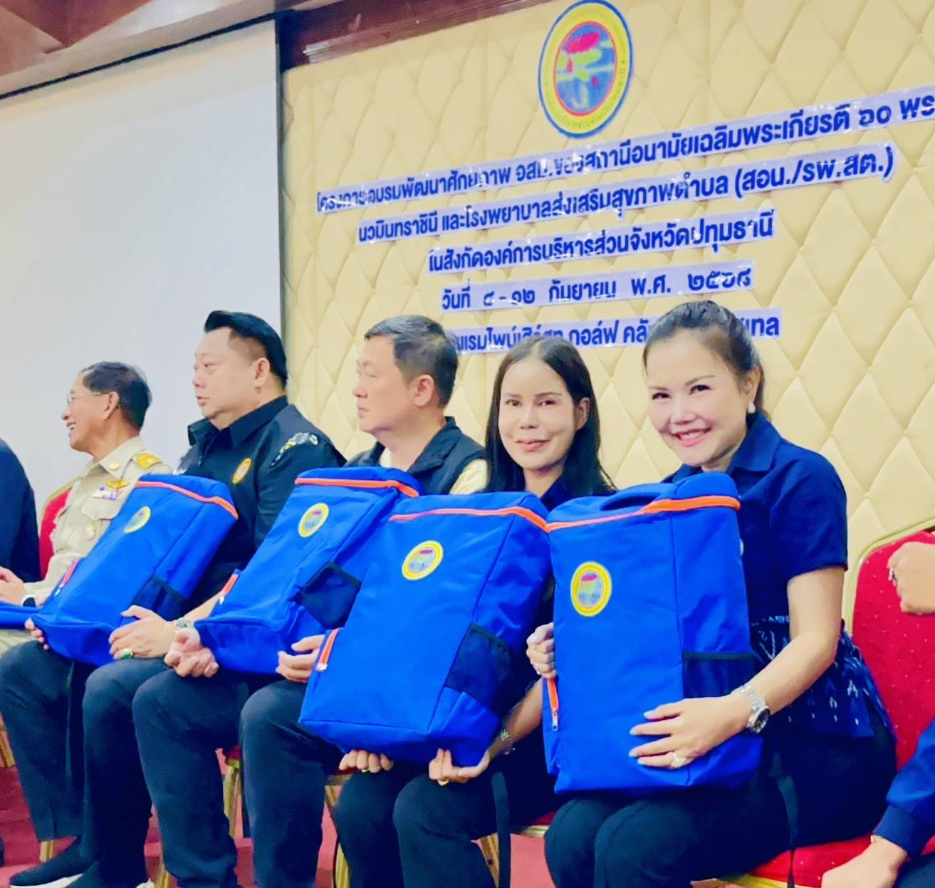 สำหรับการจัดโครงการดังกล่าวนี้ ด้วยองค์การบริหารส่วนจังหวัดปทุมธานี สนับสนุนกระเป๋าชุดตรวจคัดกรองสุขภาพให้เเก่ โรงพยาบาลส่งเสริมสุขภาพตำบลในสังกัดองค์การบริหารส่วนจังหวัดปทุมธานี จำนวน 27 เเห่ง เพื่อใช้ดูแลประชาชนในพื้นที่ ฟื้นฟูองค์ความรู้และทักษะที่จำเป็นแก่อาสาสมัครสาธารณสุข ประจำหมู่บ้าน (อสม.) ให้ทันสมัยในกาปฏิบัติงานอย่างเหมาะสมกับสภาพปัญหา สาธารณสุขของพื้นที่ เพื่อพัฒนาศักยภาพอาสาสมัครสาธารณสุขประจำหมู่บ้าน (อสม.) สามารถนำความรู้ไปพัฒนางานเสริมสร้างทัศนคติและการปฏิบัติงานได้อย่างมีประสิทธิภาพ เตรียมความพร้อมให้กับ อสม. และผู้ปฏิบัติงานในด้านหน่วย บริการสาธารณสุข ที่ถ่ายโอนมายังองค์การบริหารส่วนจังหวัดปทุมธานี ปีงบประมาณ 2569 โดยจัดโครงการในระหว่างวันที่ 8 - 12 กันยายน พ.ศ. 2568 ซึ่งในวันนี้ได้มอบกระเป๋าชุดตรวจสุขภาพให้เเก่โรงพยาบาลส่งเสริมสุขภาพตำบลในสังกัดองค์การบริหารส่วนจังหวัดปทุมธานี จำนวน 6 เเห่ง ได้เเก่ 1. โรงพยาบาลส่งเสริมสุขภาพตำบลคูขวาง 2. โรงพยาบาลส่งเสริมสุขภาพตำบลคลองพระอุดม 3. โรงพยาบาลส่งเสริมสุขภาพตำบลคูบางหลวง หมู่ 1 4. โรงพยาบาลส่งเสริมสุขภาพตำบลคูบางหลวง หมู่ 6 5. โรงพยาบาลส่งเสริมสุขภาพตำบลหน้าไม้ หมู่ 5 6. โรงพยาบาลส่งเสริมสุขภาพตำบลคลองสอง ซึ่งจะ ทยอยมอบจำนวนทั้งหมด 27 แห่ง