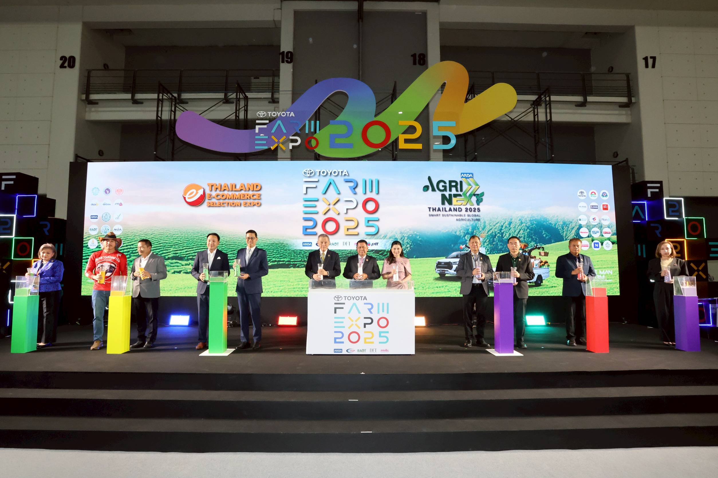 นอกจากนี้ยังมีการจัดงานร่วม (Co-Location & Co-Hosting) 2 งานใหญ่ระดับประเทศ ได้แก่ ARDA AGRINEXT Thailand 2025 : โดยสำนักงานพัฒนาการวิจัยการเกษตร (ARDA) เพื่อนำเสนอผลงานวิจัยและนวัตกรรมระดับประเทศที่ช่วยเปลี่ยนแปลงชีวิตเกษตรกรได้จริง และ Thailand E-Commerce Selection Expo 2025 (TESE 2025) โดยสมาคมการค้าและการลงทุนอาเซียน–สากล (AITIA) จับมือผู้ประกอบการจีนและแพลตฟอร์ม E-Commerce ชั้นนำ พร้อมผนึกกำลังครั้งสำคัญจากภาครัฐและเอกชน อาทิ CLP Engineering ผู้นำด้านนวัตกรรมเครื่องสีข้าวโดยคนไทยระดับประเทศ ตอกย้ำความภาคภูมิใจ ของอุตสาหกรรมเกษตรไทย, การยางแห่งประเทศไทย (RAOT) ส่งเสริมและพัฒนาอุตสาหกรรมยางพาราไทย ครอบคลุมทั้งด้านเทคโนโลยี การตลาด และสิ่งแวดล้อม มุ่งสู่ความยั่งยืนและ Net Zero , กรมการค้าต่างประเทศ กระทรวงพาณิชย์ (DFT) คัดสรรกว่า100 ผลิตภัณฑ์ที่ได้รับรางวัล Agri Plus Awards มาให้ผู้เข้าชมได้ช้อปอย่างจุใจ โอกาสเจรจาธุรกิจการค้า ที่จะทำให้เกษตรกรได้จับมือกับผู้ซื้อจริง และธนาคารออมสิน (GSB) สนับสนุนสินเชื่อเพื่อเกษตรกร ทำให้งาน โตโยต้า ฟาร์มเอ็กซ์โป 2025 ครั้งนี้ เป็นเวทีเกษตรแบบครบวงจร ที่เชื่อมโยง เกษตร–วิจัย–การค้า–เทคโนโลยี–ไลฟ์สไตล์ ไว้ในงานเดียว