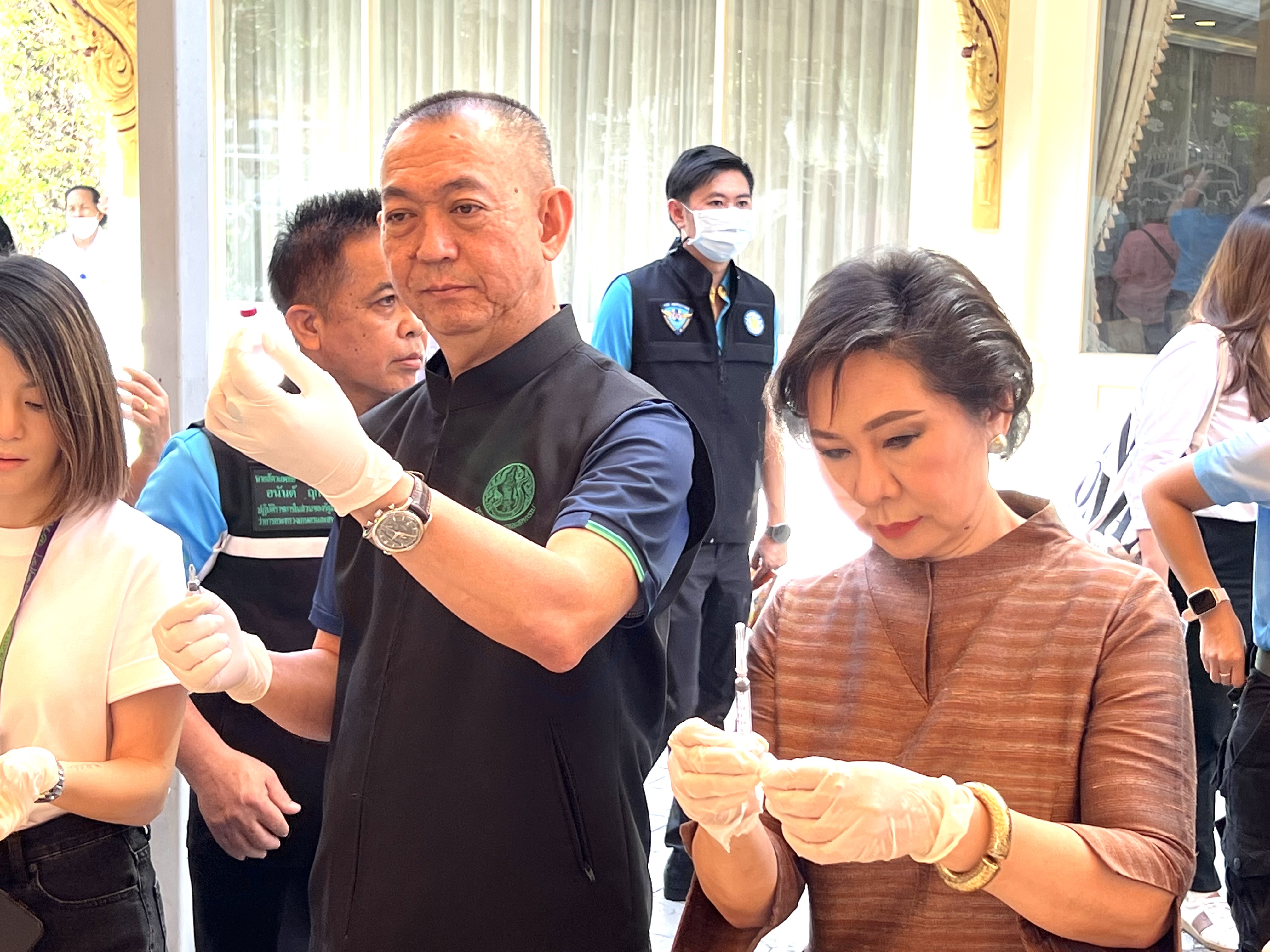 นอกจากนี้ ดร.เฉลิมชัย ศรีอ่อน รัฐมนตรีว่าการกระทรวงเกษตรและสหกรณ์ ได้นำสาธิตการผสมยาและการฉีดยาป้องกันพิษสุนัขบ้าแก่สุนัข และร่วมการรับมอบใบประกาศนียบัตรผ่านกาอบรมสร้างและพัฒนาศักยภาพอาสาปศุสัตว์ด้านโรคพิษสุนัขบ้า ดังกล่าวด้วย