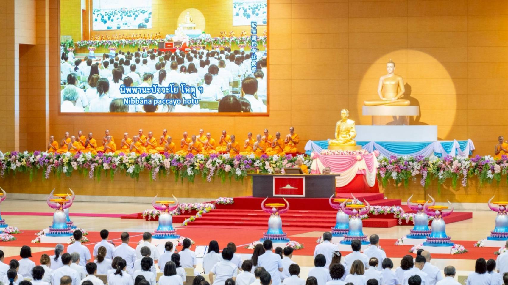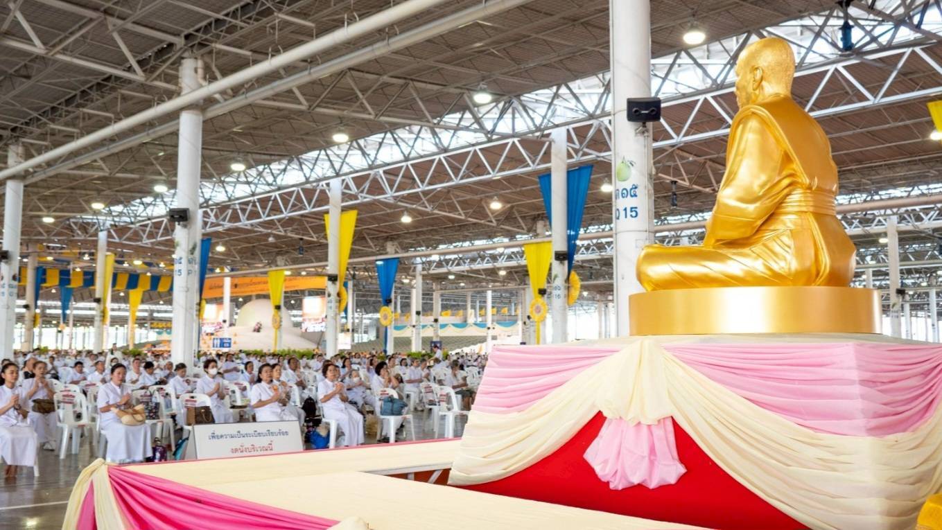 ภายในพิธี สาธุชนได้ร่วมกันปฏิบัติธรรม กล่าวคำถวายผ้าป่า และถวายจตุปัจจัยไทยธรรม แด่คณะสงฆ์ โดยมีหลวงพ่อทัตตชีโว เมตตากล่าวโอวาทถึงความสำคัญของ พระเดชพระคุณหลวงปู่ พระมงคลเทพมุนี (สด จนฺทสโร) ผู้ค้นพบวิชชาธรรมกาย ซึ่งเป็นวิธีการฝึกใจให้หยุดนิ่งจนเข้าถึงสภาวธรรมภายใน อันเป็นทางแห่งความรู้แจ้งและความหลุดพ้น ส่วนในช่วงค่ำ มีพิธีปลูก “ต้นทรัพย์บานชื่น” เป็นปฐมเริ่มของโครงการธรรมยาตรา ปี 2569 พร้อมด้วยพิธีจุดประทีป 20,000 ดวง บูชาพระมหาธรรมกายเจดีย์ และบูชาธรรมหลวงปู่พระผู้ปราบมาร ปิดท้ายด้วยพิธีฉลองชัยสวดมนต์บทธัมมจักกัปปวัตตนสูตร ครบ 7,772,141,141 จบ ท่ามกลางบรรยากาศแห่งศรัทธาและความปีติ
