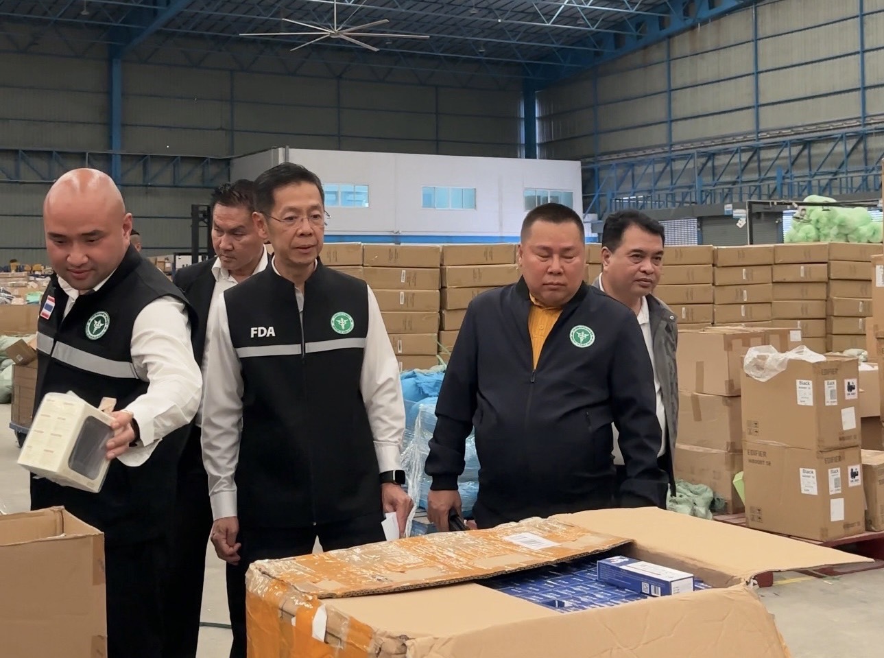 วันที่ 16 ตุลาคมพ.ศ. 2568 เมื่อเวลา 14.00 น. ตามนโยบายของรัฐบาลปราบปรามสินค้าที่ไม่มีอย.นำเข้าผิดกฎหมายกฎหมายนายวรโชติ สุคนธ์ขจร รัฐมนตรีช่วยว่าการกระทรวงสาธารณสุขนางสาวจิตศ์ตราฏ์ หมีทองธนกรณ์ เลขานุการรัฐมนตรีว่าการกระทรวงสาธารณสุข, นายแพทย์วิทิต สฤษฎีชัยกุล รองเลขาธิการคณะกรรมการอาหารและยา,นายแพทย์มณเฑียร คณาสวัสดิ์ อธิบดีกรมควบคุมโรค ,นายวิน ธนพชรโภคิน ประธานคณะทำงานรัฐมนตรีว่าการกระทรวงสาธารณสุข พล.ต.ต คงกฤช เลิศสิทธิกุล ผบก.ปคบ. และเจ้าหน้าที่ สำนักงานคณะกรรมการอาหารและยาตำรวจ ปคบ.ร่วมกันแถลงผลการทำลายแหล่งจัดเก็บและกระจายเครื่องมือแพทย์(คอนแทคเลนส์) เถื่อนในพื้นที่จังหวัดสมุทรปราการตรวจยึดของกลางจำนวน 385,070 ชิ้นมูลค่ามากกว่า 17,873,500 บาท โดยมี เจ้าหน้าที่ชุดตรวจยึดนำโดย พ.ต.ท.หญิง อนุสรา บัวแดง สว.กก.4 บก.ปคบ. พร้อมเจ้าหน้าที่ตำรวจ กก.4 บก.ปคบ. และเจ้าหน้าที่สำนักงานคณะกรรมการอาหารและยา