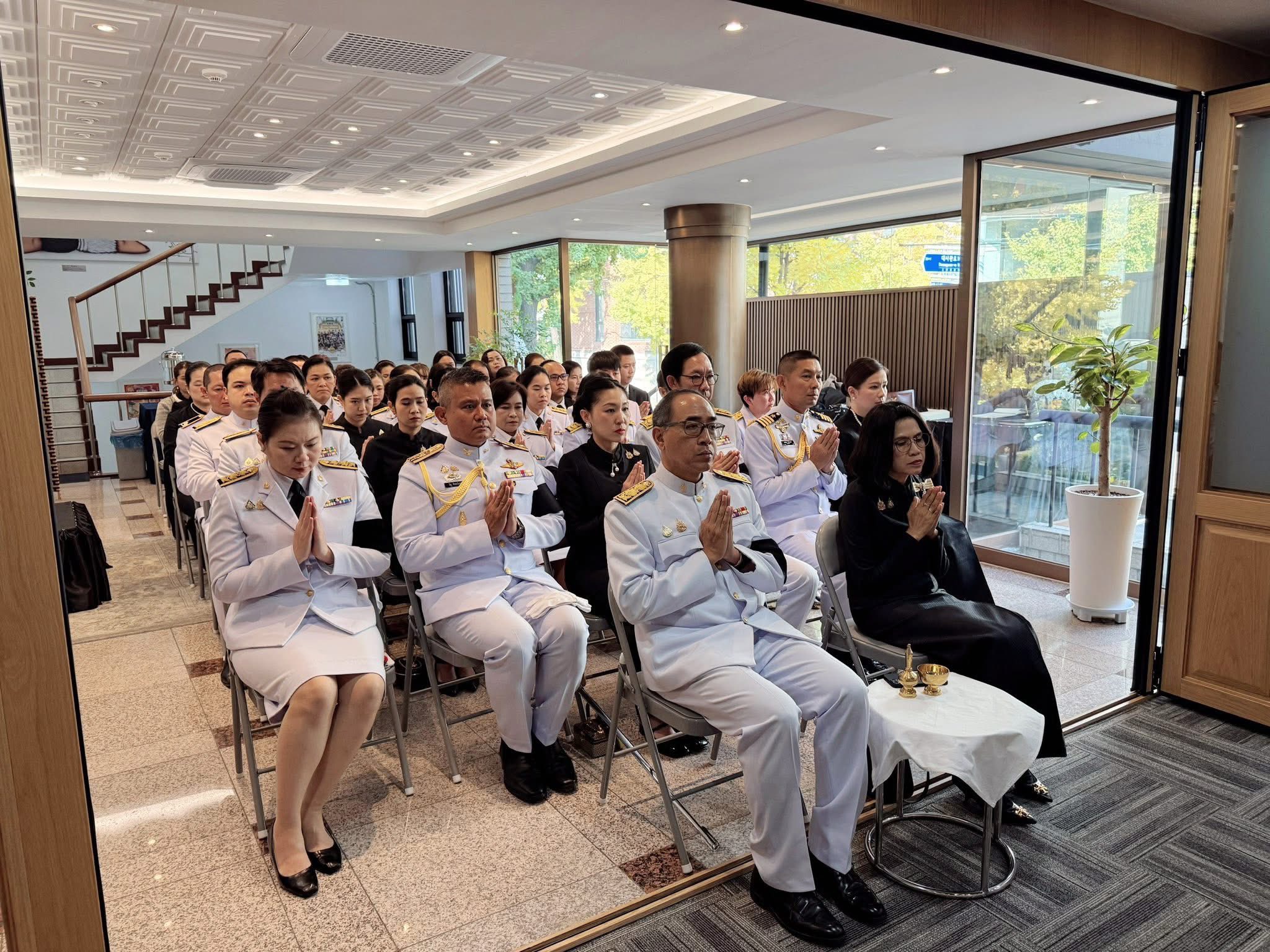 พิธีครั้งนี้จัดขึ้นด้วยบรรยากาศสงบ เปี่ยมด้วยความจงรักภักดี โดยมี พระครูใบฎีกาจิระศักดิ์ เกตุเมโธ เจ้าอาวาสวัดพุทธาราม เป็นประธานฝ่ายสงฆ์ พร้อมคณะสงฆ์จากวัดภาวนาโซลร่วมประกอบพิธีเจริญพระพุทธมนต์ ส่วนฝ่ายฆราวาสมี นายธานี แสงรัตน์ เอกอัครราชทูต ณ กรุงโซล เป็นประธาน นำข้าราชการ เจ้าหน้าที่ ทีมประเทศไทย คู่สมรส และชุมชนชาวไทยในสาธารณรัฐเกาหลี เข้าร่วมพิธีด้วยความพร้อมเพรียงและสำนึกในพระมหากรุณาธิคุณอันหาที่สุดมิได้