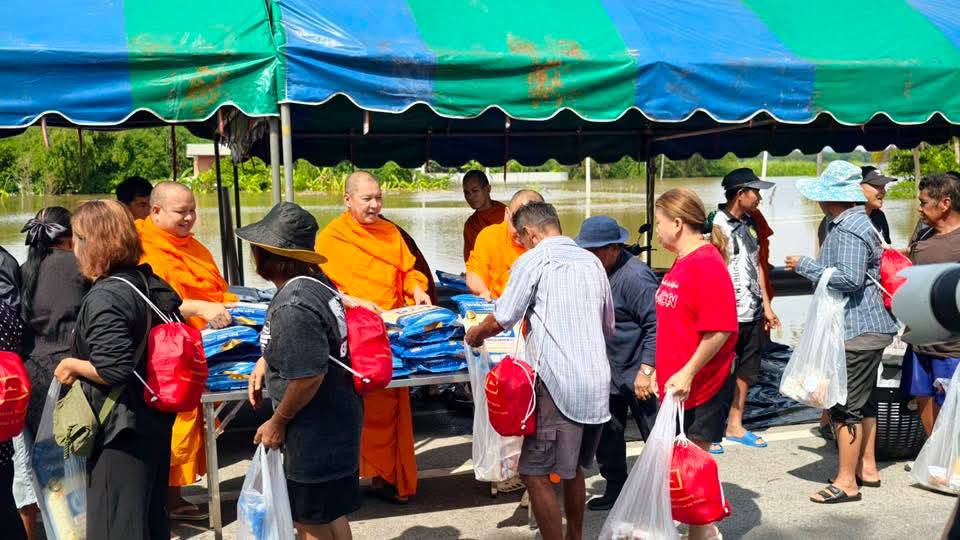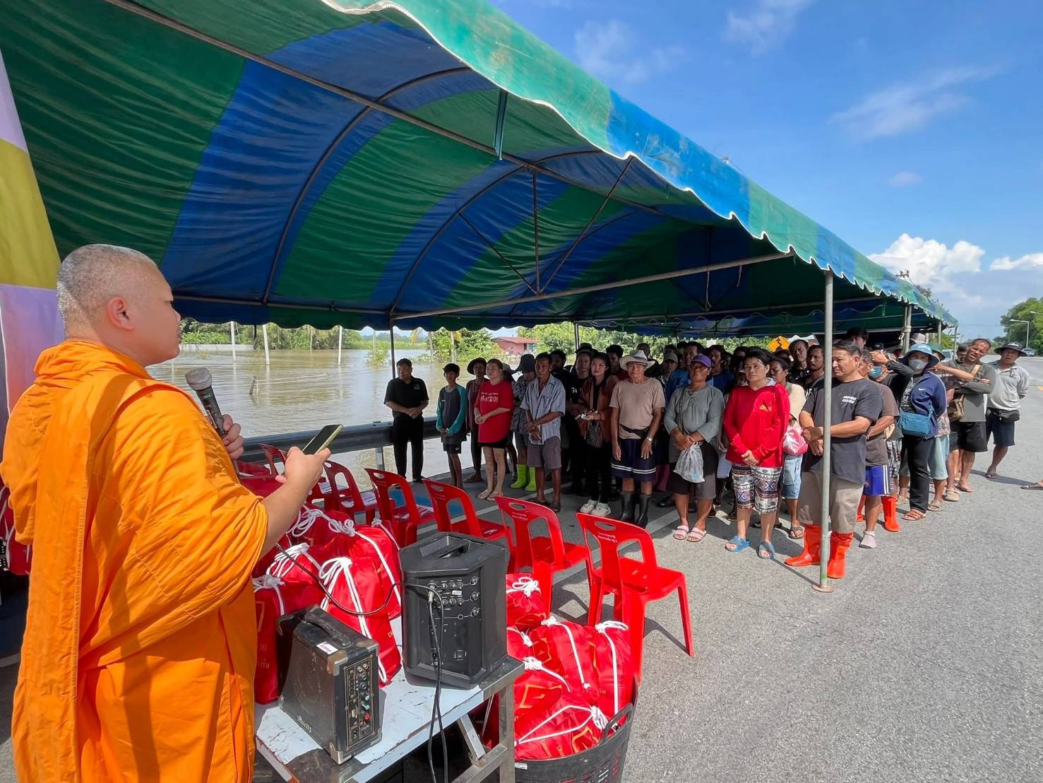 โดยเฉพาะพื้นที่รอบศูนย์ปฏิบัติธรรมอุทัยแสง ระดับน้ำยังคงเพิ่มขึ้นเรื่อย ๆ ทำให้ชาวบ้านจำนวนมากต้องใช้ชีวิตอย่างยากลำบาก ขาดแคลนสิ่งของจำเป็นต่อการดำรงชีพ การมอบถุงยังชีพครั้งนี้เพื่อประคองให้ประชาชนอยู่รอดในช่วงเวลาวิกฤต ด้วยสถานการณ์เร่งด่วนเช่นนี้ ทางศูนย์ปฏิบัติธรรมฯ ได้ประสานขอถุงยังชีพจากวัดพระธรรมกายและมูลนิธิธรรมกาย เพื่อกระจายความช่วยเหลือไปยังแต่ละอำเภอและหมู่บ้านที่เข้าถึงยากและได้รับผลกระทบมากที่สุด การช่วยเหลือครั้งนี้ไม่เพียงเป็นการแบ่งเบาภาระของประชาชนผู้ประสบภัย แต่ยังสะท้อนพลังแห่งความร่วมมือระหว่างภาคศาสนาและชุมชน ที่ร่วมแรงร่วมใจกันในยามที่พี่น้องคนไทยต้องการความช่วยเหลืออย่างแท้จริง ความช่วยเหลือที่ส่งถึงมือประชาชน จึงไม่ใช่เพียงถุงยังชีพเท่านั้น แต่เป็นกำลังใจ ความหวัง และการยืนยันว่าในยามยาก คนไทยไม่เคยทิ้งกัน