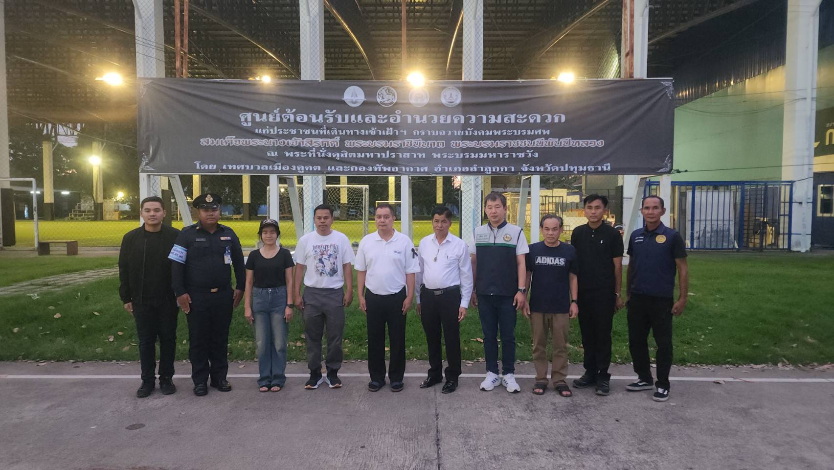เมื่อเวลา 17.30 น. วันที่ 16 พฤศจิกายน 2568 ที่ สนามกีฬากองทัพอากาศ ธูปะเตมีย์ ถ.พหลโยธิน ตำบลคูคต อำเภอลำลูกกา จังหวัดปทุมธานี นายเอกวิทย์ มีเพียร ผู้ว่าราชการจังหวัดปทุมธานี ลงพื้นที่ตรวจเยี่ยมจุดพักรถการให้การบริการประชาชนที่เดินทางมาจากต่างจังหวัด เพื่ออำนวยความสะดวกแก่ประชาชนจากจังหวัดภาคเหนือ และ ภาคตะวันออกเฉียงเหนือในการเดินทางมาเข้าเฝ้าฯ กราบถวายบังคมพระบรมศพ สมเด็จพระนางเจ้าสิริกิติ์ พระบรมราชินีนาถ พระบรมราชชนนีพันปีหลวง ตั้งแต่วันที่ 17 พฤศจิกายน 2568 ถึงวันที่ 1 กุมภาพันธ์ 2569 โดยมี นายวีรพจน์ ปานนุ่ม นายกเทศมนตรีเมืองคูคต พร้อมด้วยคณะผู้บริหาร และเจ้าหน้าที่ ทม.คูคตให้การต้อนรับ