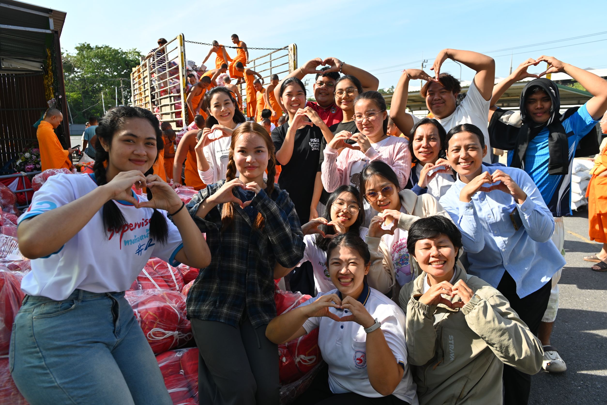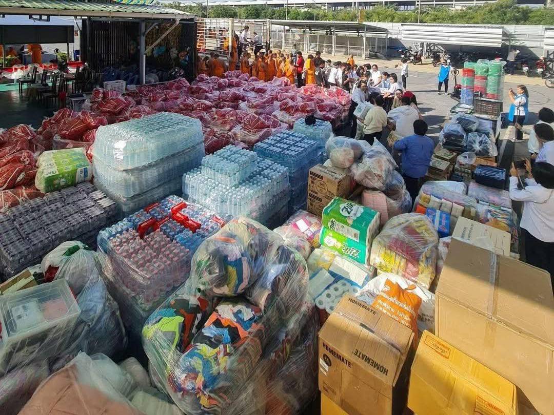 วันที่ 27 พฤศจิกายน 2568 ที่อาคารครัว 71 ปี วัดพระธรรมกาย ตำบลคลองสาม อำเภอคลองหลวง จังหวัดปทุมธานี วัดพระธรรมกายและมูลนิธิธรรมกาย พร้อมด้วยเยาวชนอาสาจาก ชมรมพุทธศาสตร์ มหาวิทยาลัยสงขลานครินทร์ (ม.อ.) วิทยาเขตหาดใหญ่ และวิทยาเขตปัตตานี ร่วมกันจัดส่งถุงยังชีพและสิ่งของจำเป็นช่วยเหลือผู้ประสบภัยน้ำท่วมในพื้นที่ภาคใต้ รวมน้ำหนักกว่า 15 ตัน