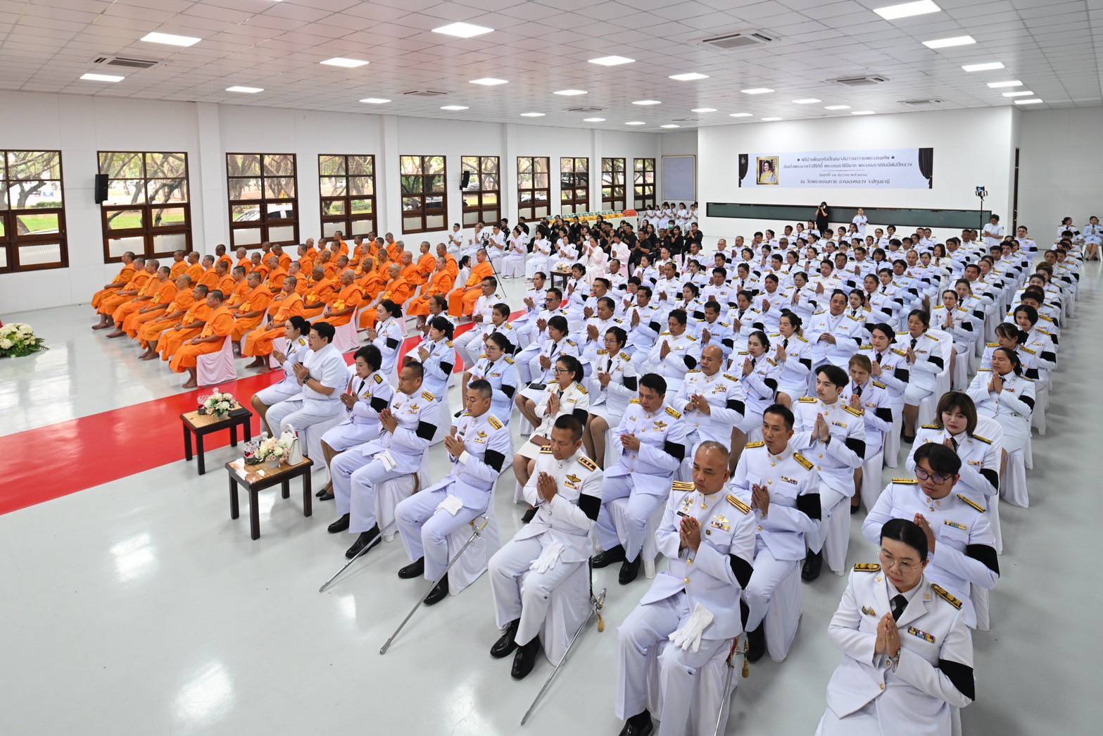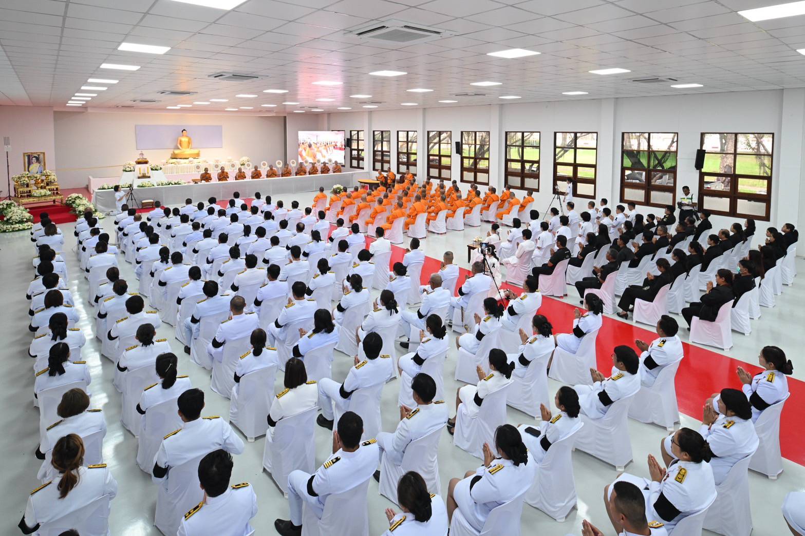 วันนี้ (วันศุกร์ที่ 12 ธันวาคม พ.ศ.2568) เวลา 16.00 น. ที่อาคารปลูกศรัทธา วัดพระธรรมกาย อำเภอคลองหลวง จังหวัดปทุมธานี อำเภอคลองหลวง ร่วมกับคณะสงฆ์อำเภอคลองหลวง, วัดพระธรรมกาย, มูลนิธิธรรมกาย และองค์กรภาคีเครือข่าย “บวร” อำเภอคลองหลวง จังหวัดปทุมธานี จัดให้มีพิธีบำเพ็ญกุศลทักษิณานุประทานอุทิศถวายพระราชกุศล แด่สมเด็จพระนางเจ้าสิริกิติ์ พระบรมราชินีนาถ พระบรมราชชนนีพันปีหลวง ปัญญาสมวาร (50 วัน) โดยมีพระครูวิจิตรอาภากร เจ้าคณะอำเภอคลองหลวง เจ้าอาวาสวัดสว่างภพ เป็นประธานสงฆ์ และนางสาวอภิสรา เกษอินทร์ นายอำเภอคลองหลวง เป็นประธานฆราวาส พร้อมด้วยพร้อมด้วย ดร.นวลนิจ หงษ์วิวัฒน์ สมาชิกวุฒิสภา, หัวหน้าส่วนราชการ, ผู้บริหารองค์กรปกครองส่วนท้องถิ่น, กำนัน, ผู้ใหญ่บ้านและคณะฝ่ายปกครองอำเภอคลองหลวง และพสกนิกรชาวอำเภอคลองหลวง เข้าร่วมพิธีฯ และมีการถ่ายทอดสดผ่านสื่ออิเล็กทรอนิกส์ออนไลน์ให้พสกนิกรทั่วไทยทั่วโลกได้ประกอบพิธีฯ ได้เข้าร่วมประกอบพิธีฯ โดยพร้อมเพรียงกัน
