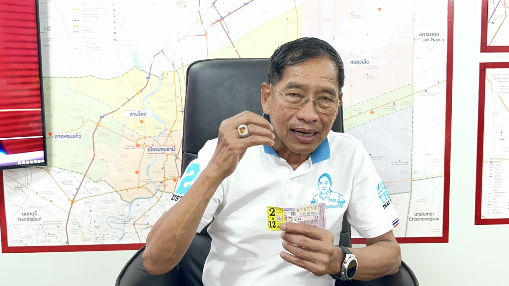 พล.ต.ท.คำรณวิทย์ ธูปกระจ่าง นายกองค์การบริหารส่วนจังหวัด ปทุมธานี กล่าวว่า เมื่อวันที่ 7 ธันวาคม 2568 หลวงปู่ศิลา ท่านได้ไปที่วัดดอนใหญ่ คลอง 8 ซึ่งทาง พระครูสังฆรักษ์ สุเทพ ฐิตพโล หรือที่รู้จักในนาม หลวงพ่อช้าง เจ้าอาวาสวัดดอนใหญ่ ซึ่งท่านโด่งดังเรื่องของการรดน้ำมนต์ ผมได้นำงบประมาณไปลงที่วัดดอนใหญ่เพื่อปลักดันให้เป็นแหล่งท่องเที่ยว ในวันนี้ ผมเป็นประธานฝ่ายฆราวาส จุดธูปเทียนชัย ในพิธีพุทธาภิเษก วัตถุมงคล ซึ่งหลวงปู่ศิลา ท่านก็เป็นองค์ประธานในพิธี ท่านก็เริ่มพิธี โดยอธิษฐานจิต บริเวณด้านหน้าท่านมีอ่างน้ำมนต์ ท่านก็ได้ใช้เทียนในการหยดทำพิธี พอท่านดับเทียน หลวงปู่ศิลาท่านก็เรียกผมเข้าไปหา คิดจะเข้าไปกราบท่านเฉยๆ แต่พอไปถึงท่านกลับชีให้ดูในอ่างน้ำมนต์ ซึ่งน้ำตาเทียนนั้นกระจายอยู่ แต่พอหลวงปู่ศิลาท่านนำนิ้วไปจิ้มในอ่างน้ำมนต์ น้ำตาเทียนที่กระจายอยู่กลับวนและรวมตัวกัน ผมก็ดูอยู่และเห็นเลขชัดเจนว่า 352 ท่านยังบอกกับมาว่าสามารถถ่ายรูปเอาไว้ได้น่ะ พอผมกำลังจะออกจากวัดก็ได้ แวะซื้อล๊อตเตอรี่ เลข 52 จำนวน 2 ใบ พอซื้อเสร็จขึ้นรถมาก็เล่าเรื่องที่เห็นให้ลูกน้องฟัง และก็ได้บอกต่อๆ กันไป จนรับรู้กันทั่ว อบจ. โดยปกติตนเองไม่เคยมีโชคจากรางวัลสลากกินแบ่งรัฐบาล เลยแต่พรรคพวกกันบอกว่ามีเลข 52 อยู่ 100 ใบ ผมก็เลยเอามาหมดเลย ไม่ดิดอะไร จนเมื่อวาน (16 ธ.ค.68) พรรคพวกที่เป็นคนซื้อ สลากกินแบ่งรัฐบาลให้ ได้โทรมาบอกกับตนเองว่า ถูกเลขท้าย 2 ใบ จำนวน 100 ใบ ผมจึงได้ลองสอบถามไปยัง ส.อบจ. และ เจ้าหน้าที่หลายๆ คน ใน อบจ. ก็พบว่าถูกกันทั่วหน้า เพราะเราได้เลขมาเราก็ส่งลงในกลุ่มไลน์ กระจายกันออกไป ซึ่งเงินที่ได้มาจะนำไปสร้างบ้านให้พลทหารวายุทั้งหมดให้สำเร็จตามวัตถุประสงค์ เพื่อเป็นขวัญและกำลังใจให้กับน้อง ๆ ทหารและครอบครัวที่ทำหน้าที่เพื่อประเทศชาติ ซึ่งตอนนี้ผมได้ให้ ทางเจ้าหน้าที่ อบจ.ปทุมธานี เปิด บัญชีเฉพาะกิจ เพื่อสร้างบ้านให้พ่อกับแม่ ของพลทหารวายุ เพื่อสืบสานเจตนารมณ์ ของพลทหารวายุ ซึ่งจะใช้เวลาในการก่อนสร้าง 2 เดือน งบประมาณในการก่อสร้างไม่เกิน 1.5 ล้านบาท โดยการถูกรางวัลของนายกแจ๊สและเจ้าหน้าที่ อบจ.ปทุมธานีครั้งนี้ ไม่เพียงแต่นำความโชคดีมาให้ แต่ยังการแบ่งปันและทำประโยชน์เพื่อสังคม