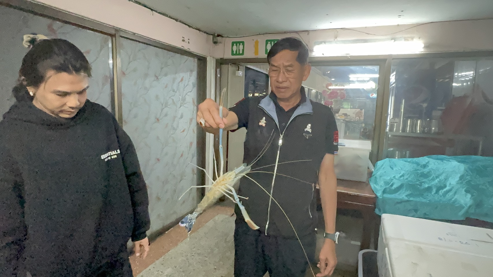 โดย พล.ต.ท.คำรณวิทย์ ธูปกระจ่าง นายก อบจ.ปทุมธานี กล่าวว่า ในวันนี้เดินทางมาพบกับ เจ้ดำ หลังทราบข่าวว่า เจ้ดำป่วย และล้มเพราะสาเหตุอาจเกิดจากเคลียดแล้วนอนไม่หลับ เนื่องจากกระแสดราม่าในโลกออนไลน์ สำหรับตัวผม ร้านเจ้ดำ ผมถือว่าเป็นร้านอาหารเก่าแก่ เป็นตำนาน ของจังหวัดปทุมธานี ใครผ่านไปผ่านมา ก็รู้จัดและแวะเข้ามาทาน ผมก็เข้ามาทาน ไม่รู้กี่สิบปีมาแล้ว และวันนี้ทราบข่าวว่าท่านป่วย และก็ล้ม เนื่องจากข่าวที่นำเสนอออกไป ที่มีลูกค้า สังเมนูกุ้งแม่น้ำทอดเกลือ 5 ตัว ราคา 5,000 บาท ซึ่งกระแสในโลกออนไลน์บอกขายแพงเกินราคา ตัวละ 1,000 บาท ซึ่งผม เห็นแล้วผม สลดใจน่ะ ลูกค้ามากมายที่มาทานแล้วไม่ได้มีปัญหา แต่ อันนี้คุณมาทานแล้วกลับมีปัญหา ซึ่งเกิดจากความรู้ของคุณเอง ผมต้องบอกว่า กุ้งสดๆ แบบนี้จากแม่น้ำเจ้าพระยา วิธีการหามันยาก ไม่ใช่ว่าคุณไปสั่งซื้อแล้วมันจะได้ เยอะ บางวัน อาจจะได้แค่ 1-2 ตัวเท่านั้น บางอาทิตย์ได้แค่ 4-5 ตัว ด้วยซ้ำ ที่มีขนาด 2 ตัว ต่อกิโลกรัม เหมือนกุ้งทอดเกลือที่เป็นข่าว อีกทั้งวิธีการอาชีพหากุ้งในแม่น้ำเจ้าพระยามันเป็นตำนวน ถ้าคุณอยากกินกุ้งก็มีหลากหลายคุณดูที่เมนูซิครับมันมีราคาบอก กุ้งแม่น้ำราคาตามกิโล 2 ตัว โล 3 ตัว โล หรือ 4 ตัวโล หรือคุณจะกินกุ้งแชบ๋วย เค้าก็มี ติดราคมชัดเจน กิโลละ 900 บาท แต่อันนี้คุณสั่งกุ้งแม่น้ำทอดเกลือ ทางร้านก็ทำให้ตามสูตรของเขา เข้าก็เอาของดีให้คุณ แต่คุณมาคอมเม้นแบบนี้มันเสียหาย ผมยอมไม่ได้ คุณอย่ามารังแกร้านค้า ใน จ.ปทุมธานี ผมอยากให้พี่น้องประชาชนเข้าใจ ทางร้านด้วย กุ้งไซด์แบบนี่ มันคือกุ้งงม ต้องงมหาในน้ำลึก หายากมาก ส่วนกุ้งที่ตกเบ็ด ขนาด 8-9 ตัวกิโล ก็จะเป็นอีกราคาหนึ่ง ทางร้านเค้าไม่ได้ไปยัดเยียดให้คุณ คุณสั่งมาคุณไม่ดูเมนู เมนูมันเขียนชัดเจน กุ้งแม่น้ำราคายังไง ตามกิโล ส่วนกุ้งแชบ๋วย หรือ กุ้งอย่างอื่นราคาก็ว่าไป ผมอยากทำความเข้าใจ ลูกค้าของร้านด้วย ทางร้านเข้าไม่สบายใจ ถ้าลูกค้าที่เข้ามาทานแล้วสร้างปัญหาแบบนี้ ก็อย่าเข้ามาทานเลย ผมต้องปกป้องร้านค้าที่มรีชื่อเสียงของ จ.ปทุมธานี