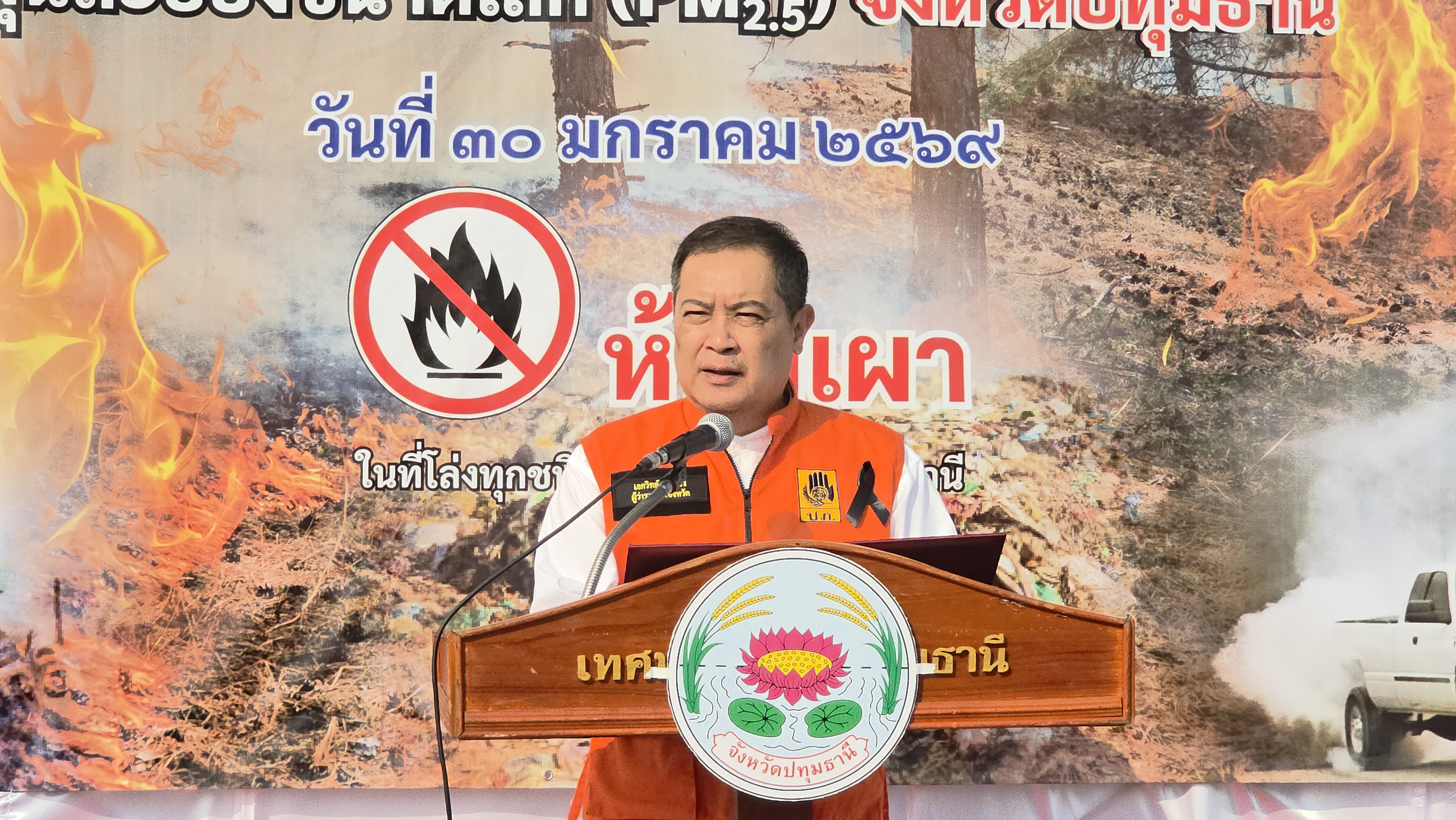 เมื่อเวลา 09.00 น. วันที่ 30 มกราคม 2569 จังหวัดปทุมธานีผนึกกำลังหน่วยงานท้องถิ่น จัดกิจกรรม “Kick Off การแก้ไขปัญหาฝุ่นละอองขนาดเล็ก (PM2.5) จังหวัดปทุมธานี” ที่ ลานจอดรถสวนเทพปทุม อ.เมืองปทุมธานี จ.ปทุมธานี โดยมีนายเอกวิทย์ มีเพียร ผู้ว่าราชการจังหวัดปทุมธานี เป็นประธาน พร้อมด้วย พลตำรวจโท คำรณวิทย์ ธูปกระจ่าง นายกองค์การบริหารส่วนจังหวัดปทุมธานี (นายกแจ๊ส) นำทีมร่วมขับเคลื่อนมาตรการเชิงรุกอย่างเต็มพิกัด