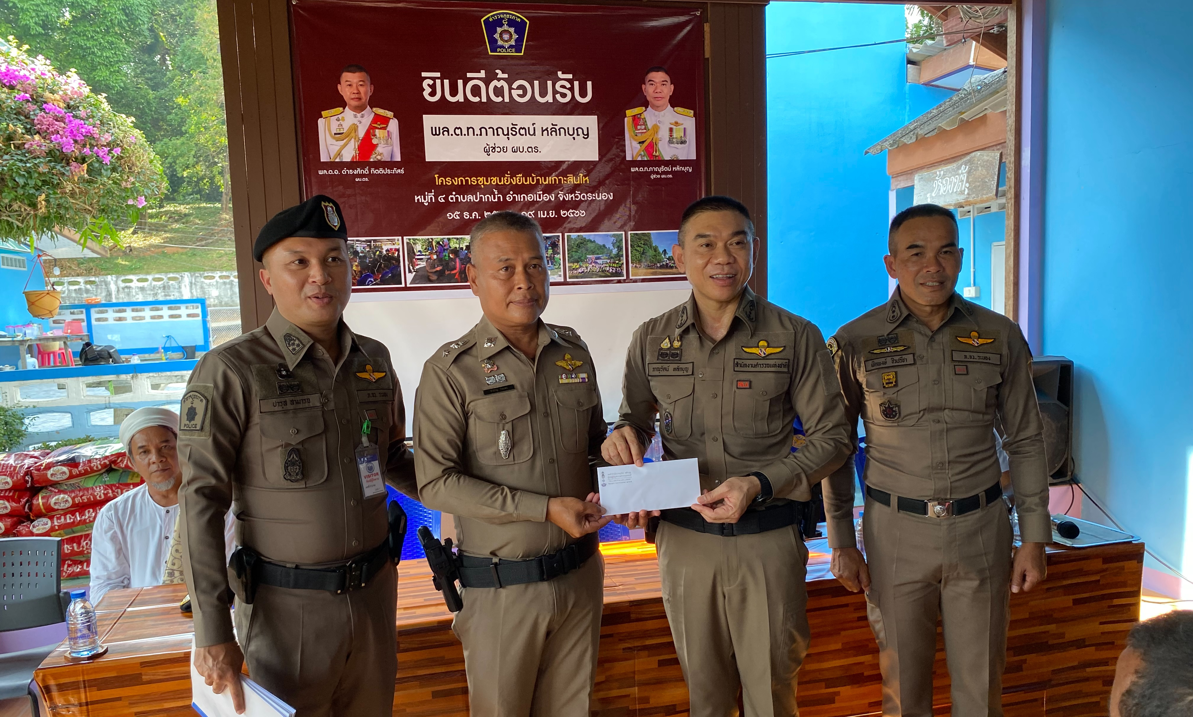 วันที่ 19 ม.ค.ที่ โรงเรียนบ้านเกาะสินไห จ.ระนอง พล.ต.ท.ภาณุรัตน์ หลักบุญ ผู้ช่วย ผบ.ตร./รอง ผอ.ศอ.ปส.ตร. ได้เดินทางมาตรวจเยี่ยมการดำเนินการตามโครงการชุมชนยั่งยืนในการแก้ไขปัญหายาเสพติดแบบครบวงจร ตามยุทธศาสตร์ชาติ ประจำปีงบประมาณ พ.ศ. 2566 ของ สภ.ปากน้ำ ภ.จว.ระนอง โดยมี พล.ต.ต.เชิดพงษ์ ชิวปรีชา ผบก.ภ.จว.ระนอง, พ.ต.อ.ปารุส สามารถ ผกก.สภ.ปากน้ำ, นายแย้มรัตน์ อุเสม ผู้ใหญ่บ้าน/ผู้นำท้องถิ่น, นายรอฟีด มะหะหมัด โต๊ะอิหม่าม/ผู้นำศาสนา, นายสุรินทร์ นักร้อง ผอ.รพ.สต.เกาะสินไห, เจ้าหน้าที่ฝ่ายปกครอง และข้าราชการตำรวจ สภ.ปากน้ำ เข้าร่วมโครงการดังกล่าว
