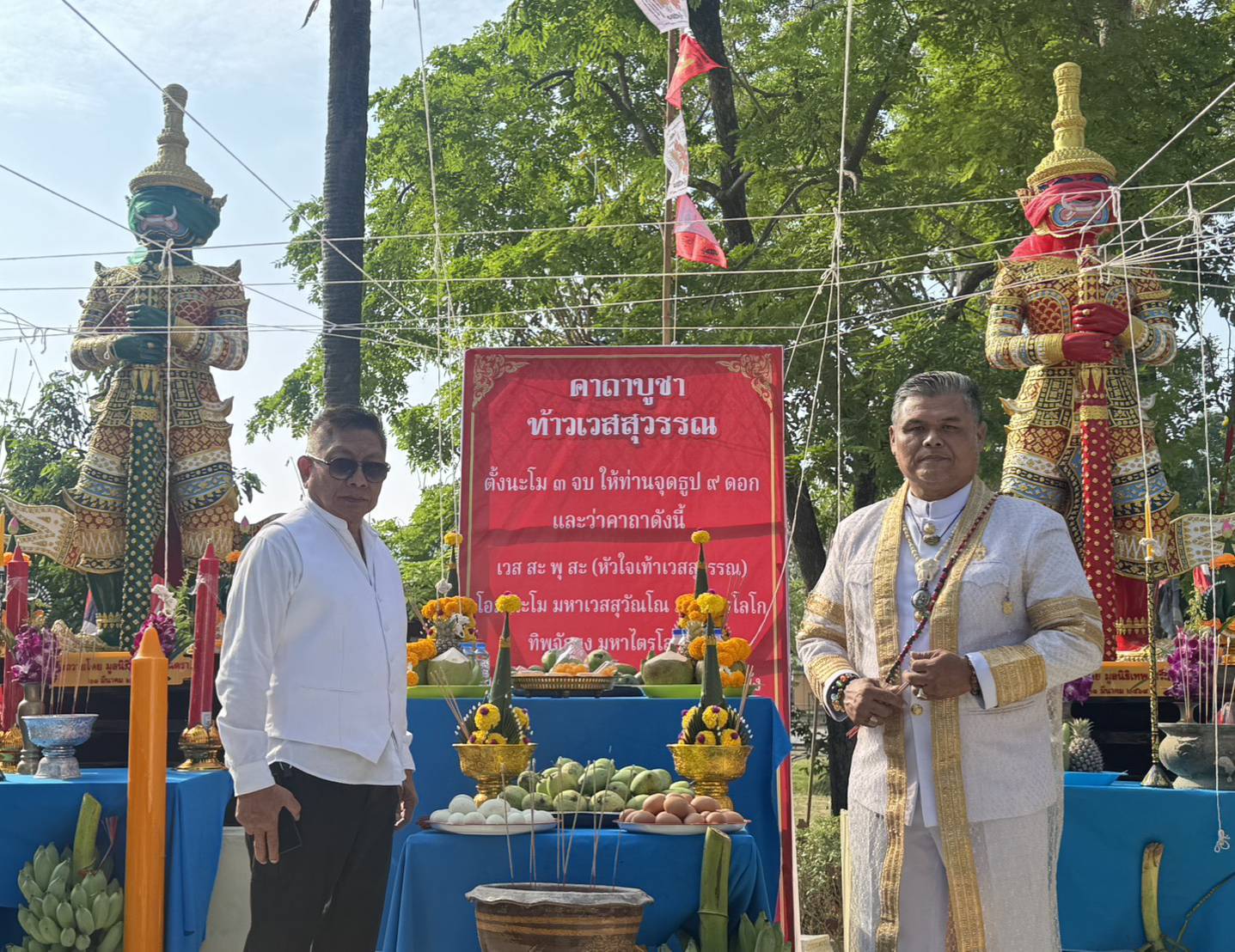 ในพิธีอันศักดิ์สิทธิ์นี้ อาจารย์ ดร.อานนท์ แก้วมโนรมย์ พร้อมด้วย คุณสุภาพร แพบัว รองประธานมูลนิธิเทพ ศรียันตรา ร่วมเป็นประธานในพิธีจุดธูปเทียนเบิกฤกษ์เบิกชัย ถวายสักการะบูชาเทพไทเทวา