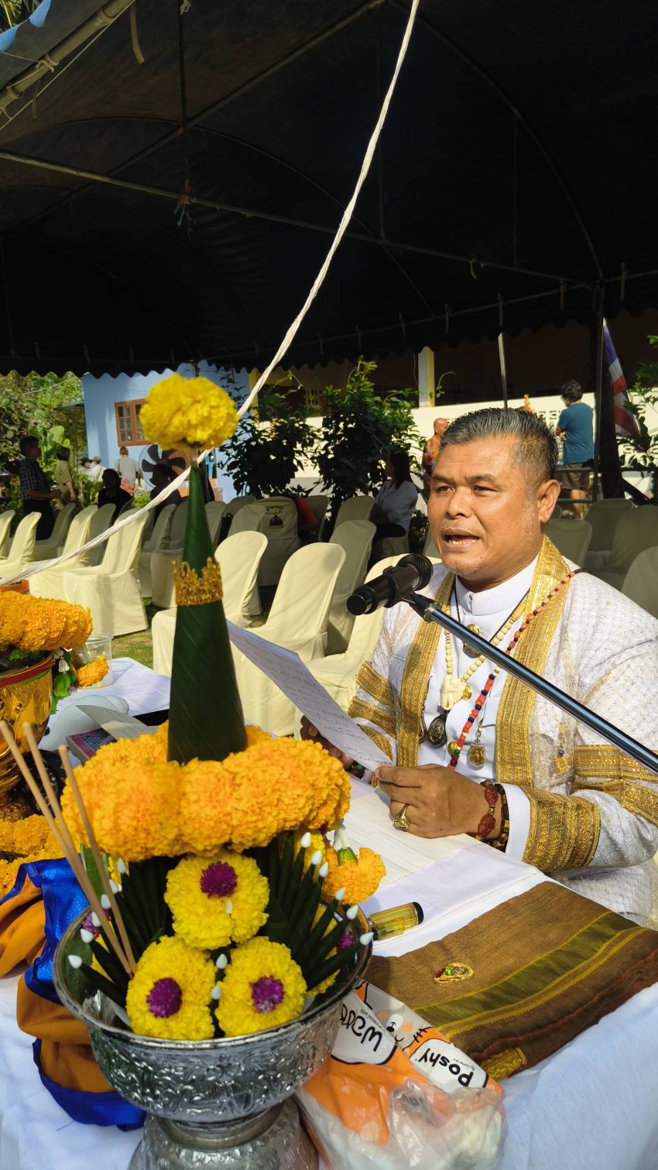 โดยมี พระครูสังฆรักษ์ สง่า โสตถิโก พระสงฆ์ผู้ดูแลสวนเทวสถาน พร้อมด้วยคณะสงฆ์อีก 3 รูป ร่วมสวดเจริญพระพุทธมนต์และสวดชยันโต เพื่อชัยมงคลและความเป็นศิริมงคลสูงสุดแก่ผู้เข้าร่วมพิธีและสาธุชนที่มีจิตศรัทธา
