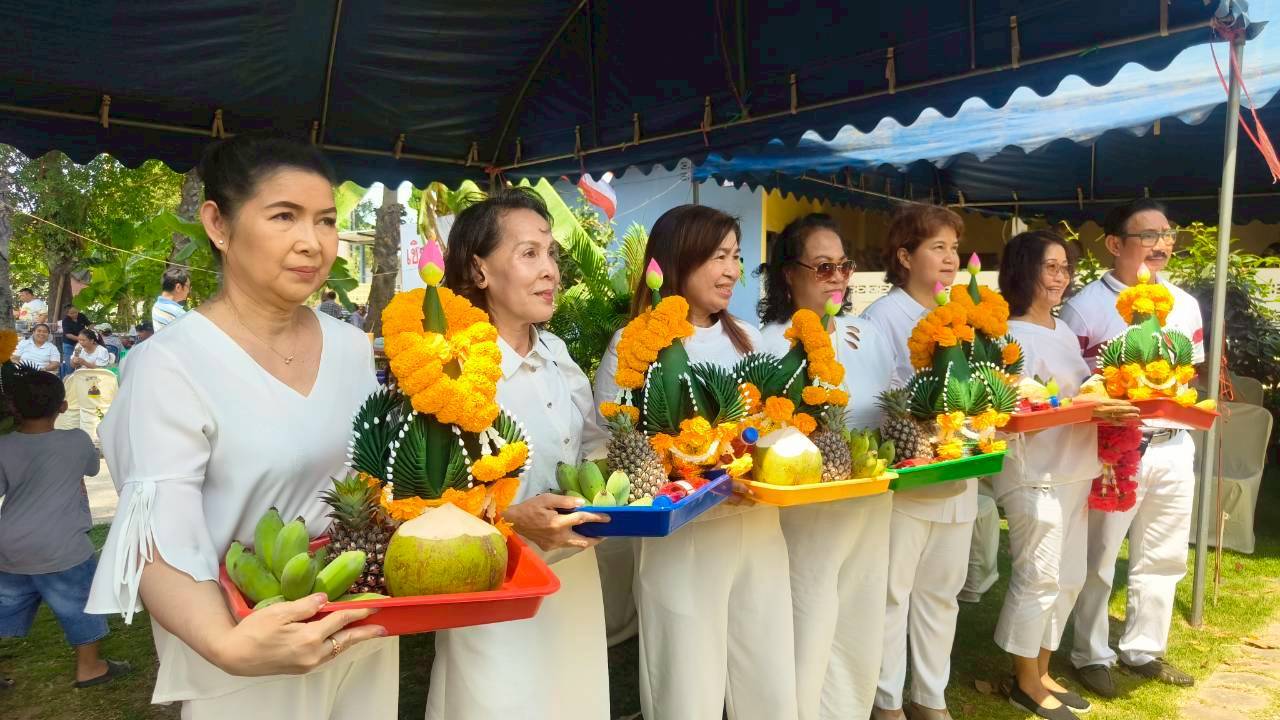 จากนั้นเข้าสู่พิธีบวงสรวงโดยมี อาจารย์ ธนานันท์ เทพศรียันตรา โหราผู้เชี่ยวชาญพิธีกรรม เป็นผู้อ่านโองการบวงสรวงอัญเชิญเหล่าเทพยดาและสิ่งศักดิ์สิทธิ์มาสถิตเป็นสักขีพยาน นอกจากนี้ ทางมูลนิธิฯ ยังได้ถวายปัจจัยร่วมบุญต้นผ้าป่ามหากุศลเพิ่มเติมอีกจำนวน 13,598 บาท (หนึ่งหมื่นสามพันห้าร้อยเก้าสิบแปดบาท) เพื่อสมทบทุนในการสร้างห้องน้ำให้แก่ทางวัด