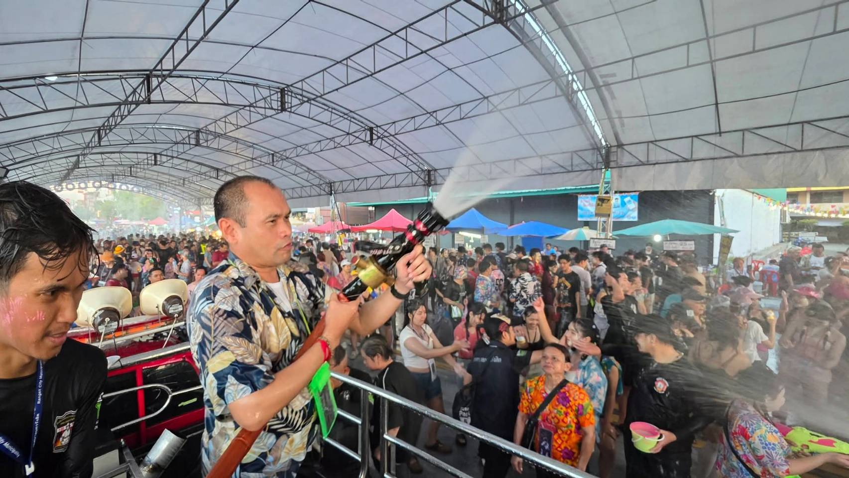 โดย ร้อยตำรวจเอก ดร.ตรีลุพธ์ ธูปกระจ่าง (นายกโบว์ลิ่ง) นายกเทศมนตรีนครรังสิต เปิดเผยว่า เพื่อความเรียบร้อยของงาน เจ้าหน้าที่เทศกิจ เทศบาลนครรังสิต ได้ผนึกกำลังกับเจ้าหน้าที่ตำรวจ สภ.ประตูน้ำจุฬาลงกรณ์ เข้าประจำจุดเพื่ออำนวยความสะดวกด้านการจราจรและดูแลความปลอดภัยรอบบริเวณพื้นที่จัดงาน พร้อมห้ามรถทุกชนิดขับเข้างาน และทางเทศบาลขอความร่วมมือผู้เข้าร่วมงานปฏิบัติตามกฎอย่างเคร่งครัด ห้าม พกพาอาวุธและเครื่องดื่มแอลกอฮอล์เข้าพื้นที่ ห้าม เบิ้ลรถหรือบีบแตรส่งเสียงดังรบกวน เล่นน้ำอย่างสุภาพ ไม่ฉีดน้ำใส่หน้าหรือผู้ขับขี่ร ระมัดระวังพื้นลื่น และดูแลบุตรหลาน ผู้สูงอายุอย่างใกล้ชิด