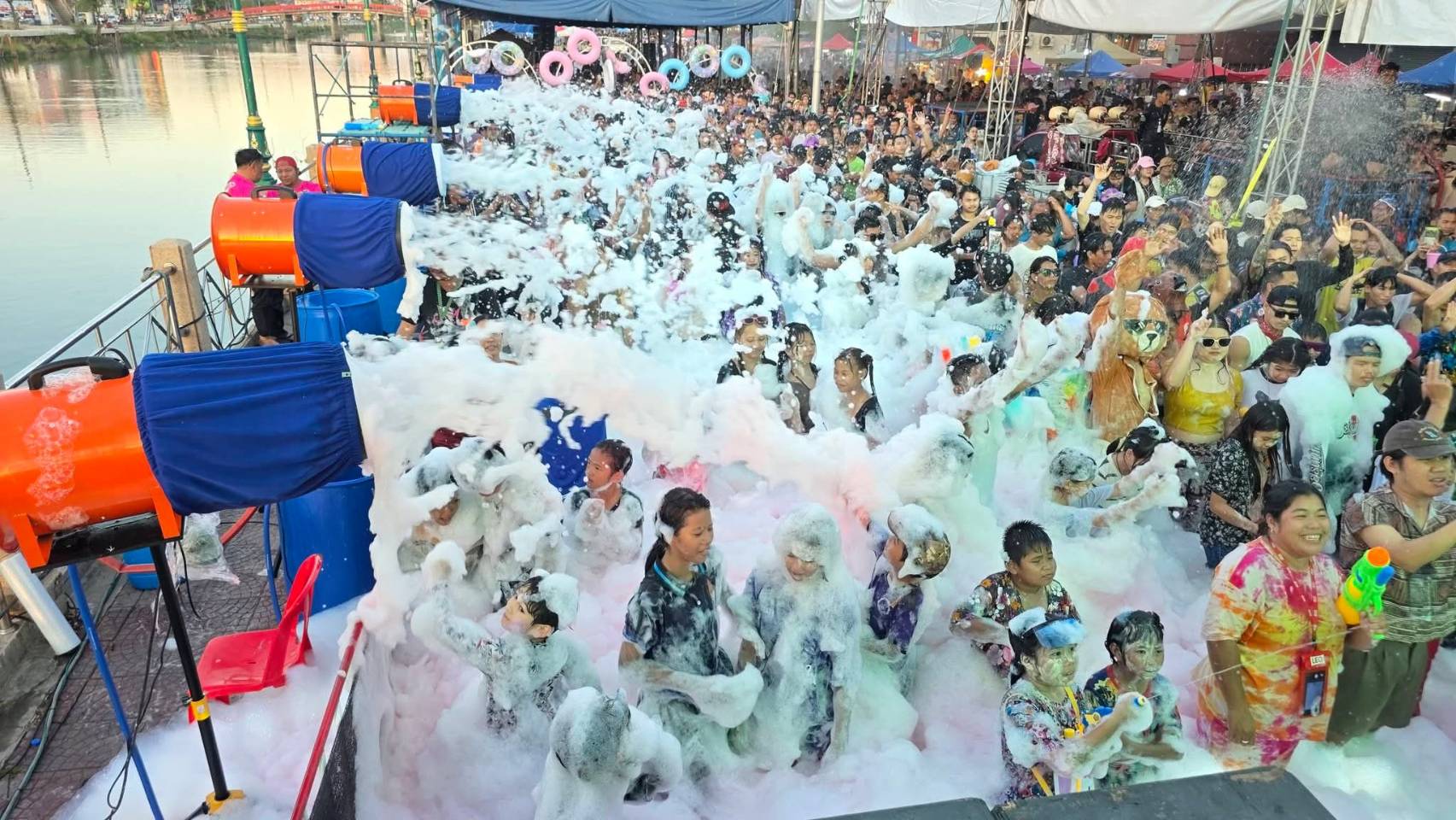 เทศบาลนครรังสิตเนรมิตพื้นที่ริมเขื่อนสะพานแดงให้เป็นแลนด์มาร์คแห่งความสุข ตั้งแต่เวลา 12.00 - 22.00 น. โดยมีกิจกรรมไฮไลท์ ดังนี้ ช่วงกลางวัน: สรงน้ำพระพุทธรูปเพื่อความเป็นสิริมงคล และดับร้อนด้วย "อุโมงค์น้ำ" ยาวตลอดแนวงาน ช่วงบ่าย: สนุกไปกับเสียงเพลงจากบูธ DJ สร้างจังหวะความมันส์ให้ผู้ร่วมงาน ช่วงค่ำ (18.00 น. เป็นต้นไป) พบกับคอนเสิร์ตจากศิลปินชั้นนำ และ "ปาร์ตี้โฟม" สุดอลังการที่สร้างรอยยิ้มและความสนุกสนานให้กับเด็กและผู้ใหญ่ งานนี้มีกิมมิคการแต่งกายเอาใจคนโสดและคนเหงา โดยคนโสด ใส่เสื้อสีขาว เข้าร่วมงาน ส่วนคนเหงา จัดเต็มเสื้อสีสันสดใส
