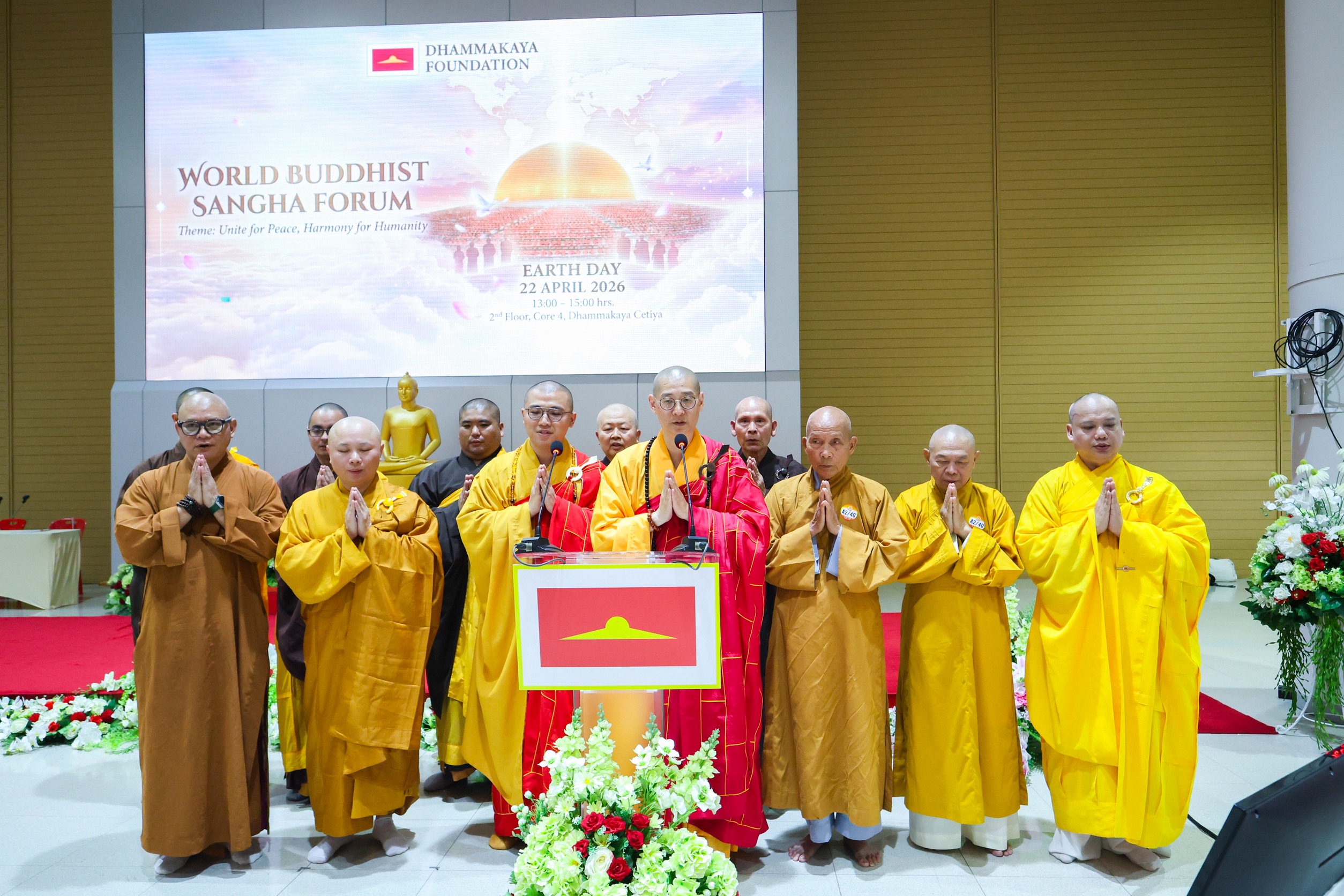 วันที่ 23 เมษายน 2569 พระครูสมุห์สนิทวงศ์ วุฑฺฒิวํโส ผู้ช่วยเจ้าอาวาสวัดพระธรรมกาย จังหวัดปทุมธานี และผู้อำนวยการสำนักสื่อสารองค์กร ได้เปิดเผยว่า คณะสงฆ์และผู้นำชาวพุทธจากหลายประเทศร่วมเวทีเสวนาระดับนานาชาติ “World Buddhist Sangha Forum” เนื่องในวันคุ้มครองโลก (Earth Day) เมื่อวันที่ 22 เมษายน 2569 ที่วัดพระธรรมกาย จ.ปทุมธานี พร้อมแลกเปลี่ยนมุมมองบทบาทพระพุทธศาสนาในยุคโลกเปลี่ยนแปลง โดยย้ำทิศทางสำคัญ “สงฆ์ต้องรับผิดชอบต่อสังคม ด้วยการพัฒนาธรรมะภายใน”