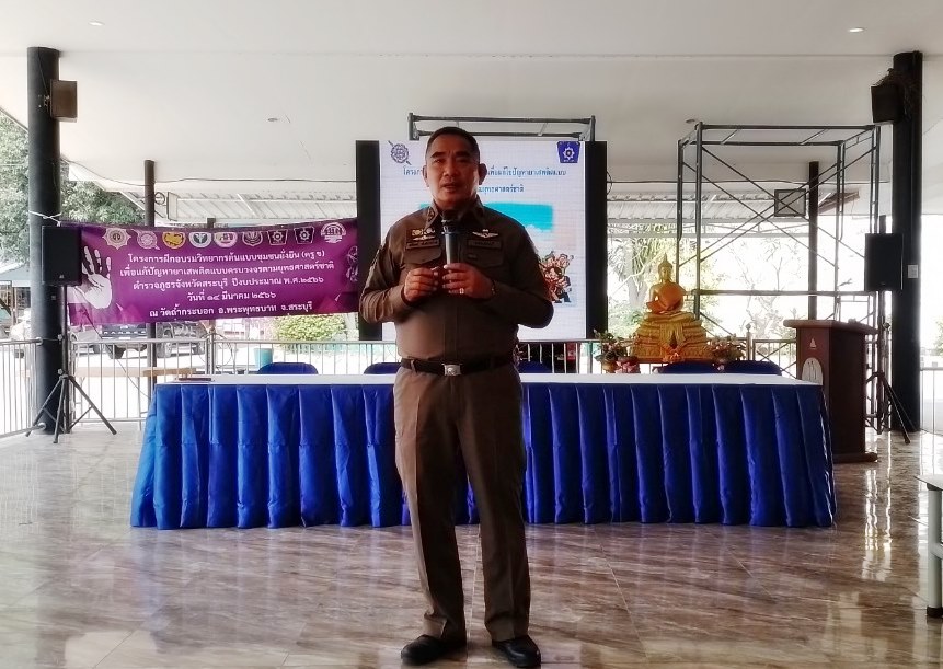 วันนี้ 14 มี.ค.66 ณ วัดถ้ำกระบอก อ.พระพุทธบาท จ.สระบุรี พ.ต.อ.สิงห์ สิงห์เดช รอง.ผบก.ภ.จว.สระบุรี เป็นประธาน พิธีเปิดการฝึกอบรม เจ้าหน้าที่วิทยากรต้นแบบ (ครู ข) ในโครงการแก้ไขปัญหายาเสพติดแบบครบวงจรตามยุทธศาสตร์ชาติ ตามงบประมาณ ปี 2566 โดยมี หัวหน้าสถานีตำรวจในสังกัด ภ.จว.สระบุรี / เจ้าหน้าที่สาธารณสุข ทุกอำเภอ / เจ้าหน้าที่ฝ่ายปกครอง ทุกอำเภอ / ข้าราชการตำรวจ (วิทยากร ครู ข) ทุกสถานี ของ ภ.จส.สระบุรี เข้าร่วมพิธี และได้รับเกียรติจากนายเรืองลักษณ์ เรืองยังมี นายอำเภอพระพุทธบาทร่วมพิธีดังกล่าวด้วย