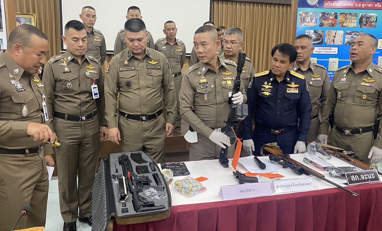 วันที่ 20 มี.ค.เวลา 14.00 น. ที่ ห้องประชุมชัยจินดา สภ.หาดใหญ่ จ.สงขลา พล.ต.ท.สมพงษ์ ชิงดวง ผู้ช่วย ผบ.ตร. ในฐานะ รอง ผอ.ศอ.ปส.ตร. พร้อมด้วย พล.ต.ท.นันทเดช ย้อยนวล ผบช.ภ.9 พล.ต.ต.นิตินัย หลังยาหน่าย รอง ผบช.ภ.9 พล.ต.ต.วรา เวชชาภินันท์ ผบก.ภ.จว.สงขลา พ.ต.อ.พิชัย กิระวาณิช รอง ผบก.ภ.จว.สงขลา พ.ต.อ.เธียรวิโรจน์ เชี่ยวชาญ รอง ผบก.อก.ภ.7 พ.ต.อ.ภัคพงศ์ สายอุบล รอง ผบก.วจ.สยศ.ตร. พ.ต.อ.จารุพันธ์ เสริมพงศ์ รอง ผบก.อฎ. พ.ต.อ.ภูมิ บาลทิพย์ ผกก.สภ.หาดใหญ่ ร่วมกันแถลงผลการติดตาม และเร่งรัดการปฏิบัติขับเคลื่อนการดำเนินการปิดล้อมตรวจค้นเป้าหมายเครือข่ายผู้กระทำความผิดเกี่ยวกับยาเสพติด ในพื้นที่กองบัญชาการตำรวจภูธรภาค 9 (บช.ภ.9) โดยได้เข้าปิดล้อมตรวจค้นเป้าหมายจำนวน 319 เครือข่าย รวม 609 จุด ใน 7 จังหวัดภาคใต้ตอนล่าง เมื่อเช้าตรู่ของวันนี้