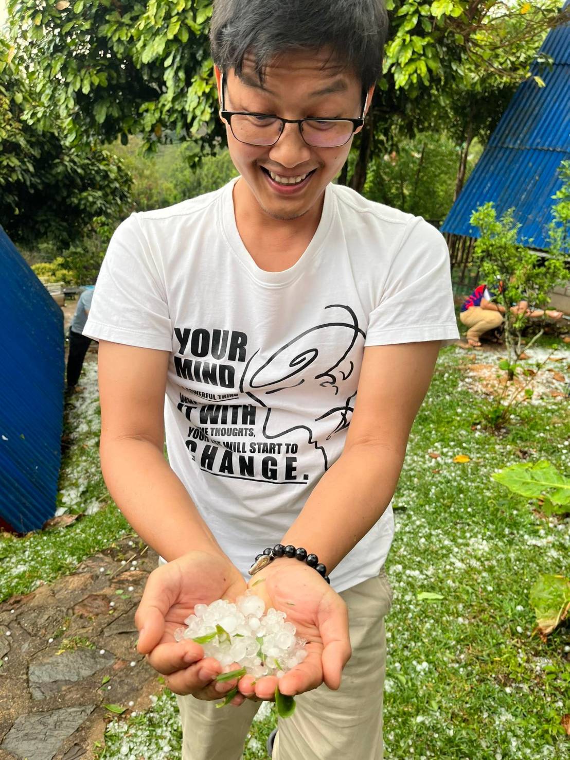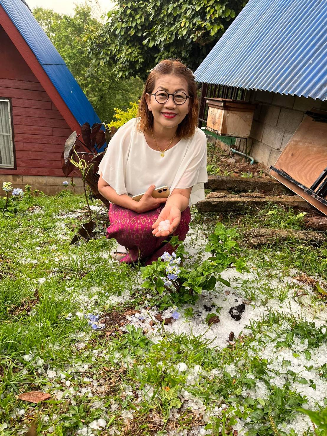 นายอุกฤษ สิงห์แก้ว เจ้าของอุกฤษฟาร์มฮิลล์รีสอร์ท บ้านร่มโพธิ์ทอง ม.19 ต.ตับเต่า เล่าว่า พายุดังกล่าวเริ่มก่อเค้าตั้งแต่ช่วงประมาณ 5 โมงเกือบจะ 6 โมงเย็น โดยมีลูกเห็บตกลงมาด้วย ซึ่งถือเป็นปรากฏการณ์ที่ไม่ได้เห็นมานานนับ 10 ปีมาแล้ว สร้างความตื่นเต้นและประหลาดใจแก่ทั้งคนในพื้นที่และนักท่องเที่ยวเป็นอย่างมาก ซึ่งพายุฝนได้ตกลงมาประมาณ 10 นาที ก่อนจะหยุดไป