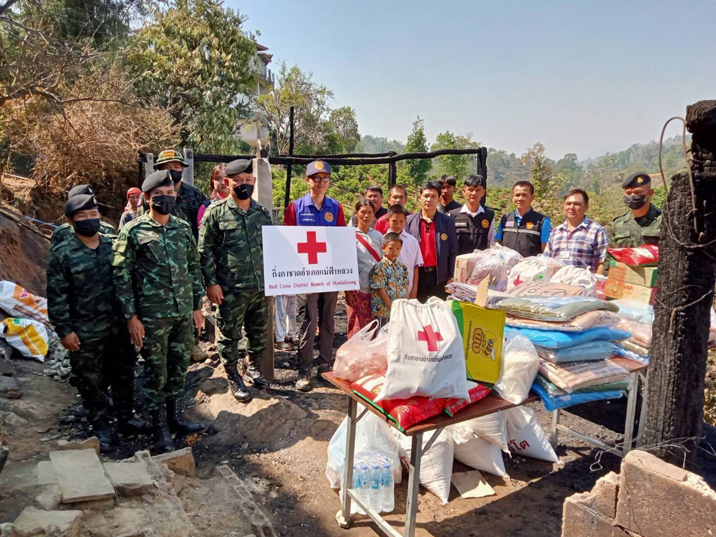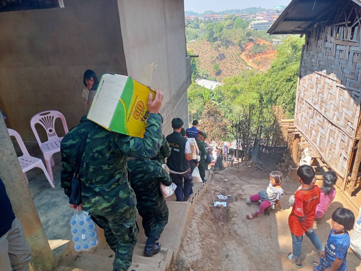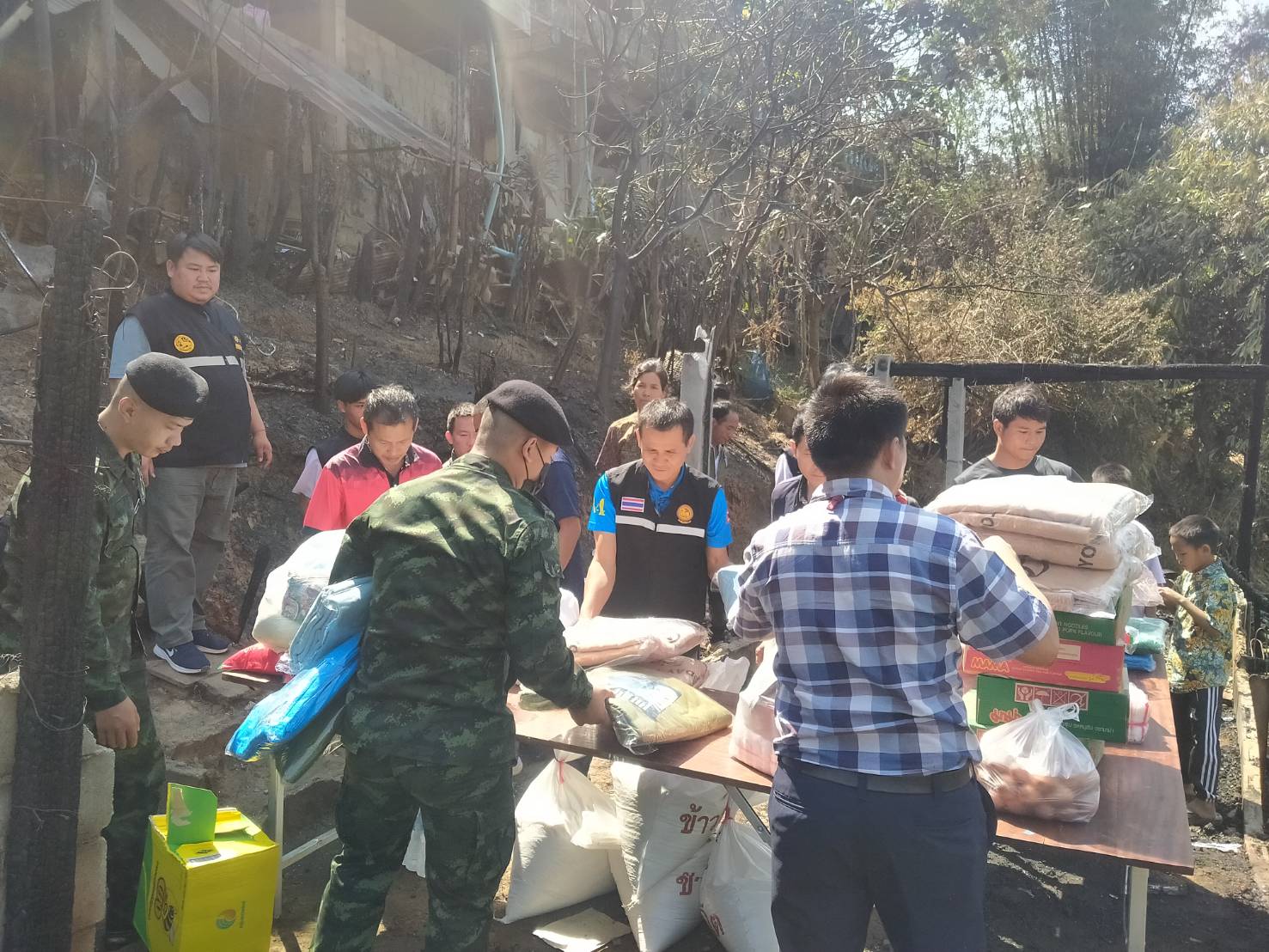 ต่อมาเมื่อวันที่ 22 มีนาคม 2566 กองร้อยทหารม้าที่ 1 หน่วยเฉพาะกิจทัพเจ้าตาก ร่วมกับ กิ่งกาชาด อำเภอแม่ฟ้าหลวง, องค์การบริหารส่วนตำบลเทิดไทย, โครงการพัฒนาเพื่อความมั่นคง แม่ฟ้าหลวง – แม่จัน และผู้นำชุมชน ได้นำสิ่งของอุปโภคบริโภค ที่จำเป็นไปมอบให้กับประชาชนที่ได้ประสบภัย เพื่อเป็นการบรรเทาความเดือดร้อนให้กับประชาชนในเบื้องต้น และจะดำเนินการช่วยเหลือตามขั้นตอนต่อไป