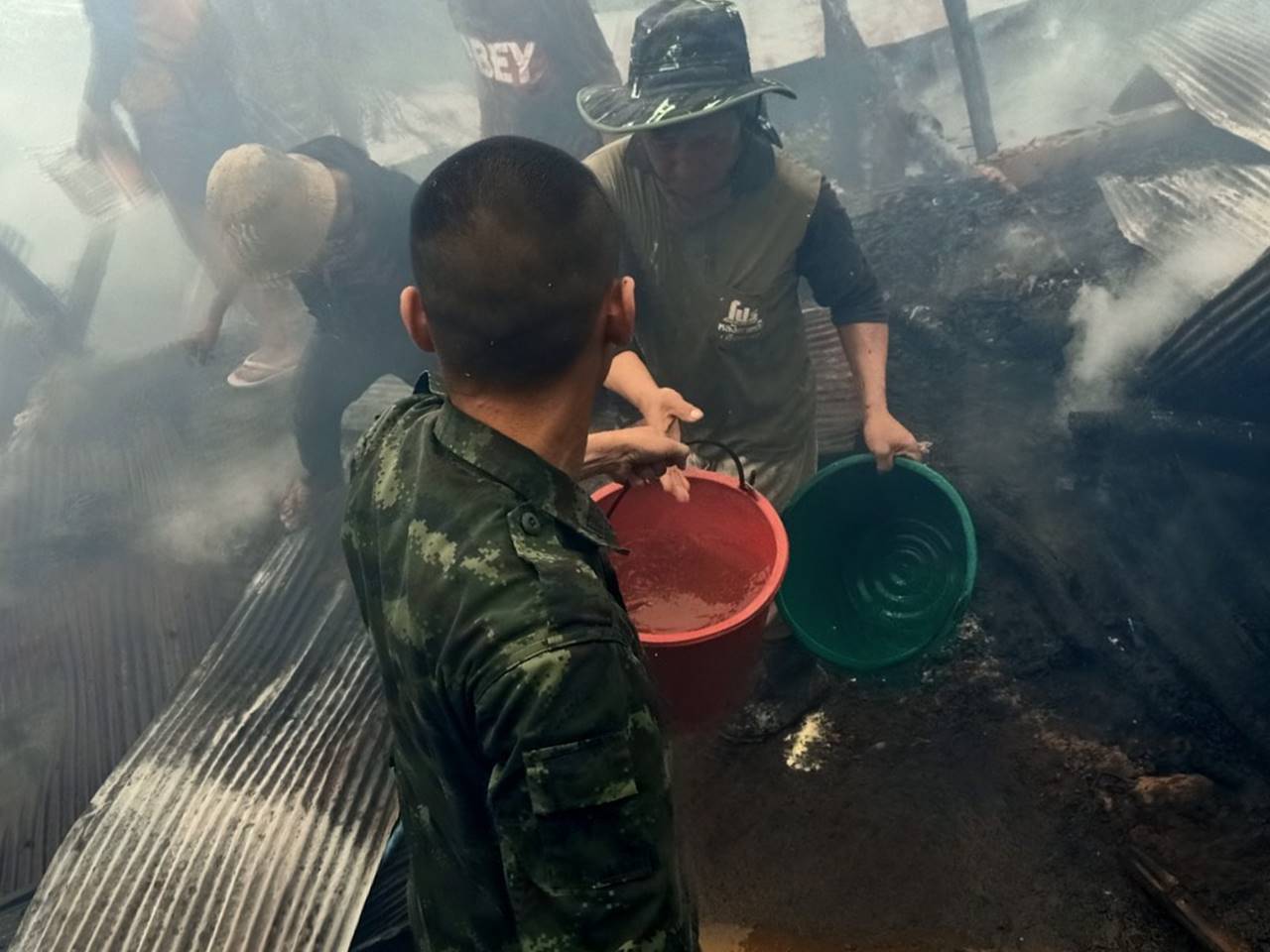 เมื่อวันที่ 21 มีนาคม 2566 เวลาประมาณ 11.30 น. ที่ผ่านมา หน่วยเฉพาะกิจทัพเจ้าตาก ได้จัดกำลังจาก ชุดพัฒนาสัมพันธ์มวลชนที่ 3208 ร่วมกับเจ้าหน้าที่องค์การบริหารส่วนตำบลเทอดไทย พร้อมทั้งประชาชนในพื้นที่ ร่วมกันดับไฟ ที่กำลังลุกไหม้บ้านเรือนประชาชน จำนวน 1 หลัง ในพื้นที่ บ้านพญาไพรเล่าจอ ตำบลเทอดไทย อำเภอแม่ฟ้าหลวง จังหวัดเชียงราย และช่วยทำการขนย้ายสิ่งของออกจากบ้านเรือนที่อยู่ข้างเคียง แต่กว่าจะสามารถดับเพลิงไว้ได้ ไฟได้ลุกลามไปยังบ้านเรือนข้างเคียง ทำให้เสียหายทั้งหลัง จำนวน 4 หลังคาเรือน ไม่มีผู้ได้รับบาดเจ็บหรือเสียชีวิต