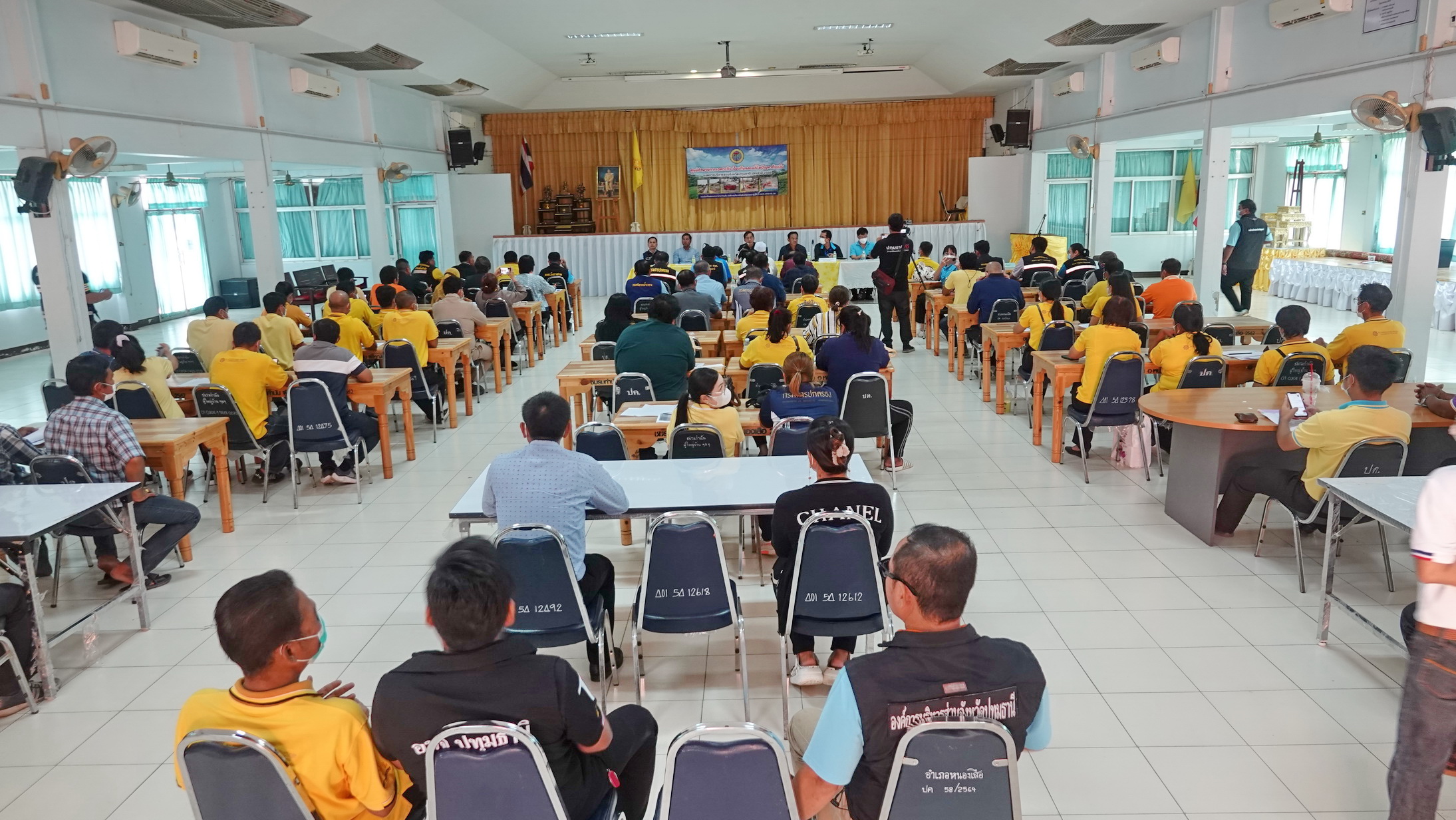 พล.ต.ท.คำรณวิทย์ ธูปกระจ่าง นายกองค์การบริหารส่วนจังหวัดปทุมธานี เป็นประธานในการประชุมแก้ไขปัญหาภัยแล้งในเขตพื้นที่อำเภอหนองเสือ เพื่อป้องกันและแก้ไขภัยแล้งอย่างยั่งยืน โดยมีคณะผู้บริหาร สมาชิกสภา กองป้องกันและบรรเทาสาธารณภัย อบจ.ปทุมธานี ผู้นำชุมชน และหน่วยงานราชการที่เกี่ยวข้อง ว่าที่ร้อยตรีธีระพล โชคนำชัย นายอำเภอหนองเสือ , นายมานพ แจ่มมี ผู้อำนวยการโครงการส่งน้ำและบำรุงรักษารังสิตเหนือ , นายเฉลิมพล ทองน้อย ผู้อำนวยการส่วนบริหารจัดการน้ำและบำรุงรักษา สำนักงานชลประทานที่ 11 เข้าร่วมการประชุมในครั้งนี้ โดยมีชาวบ้านนำผลผลิตทางการเกษตร พืชผักผลไม้ที่ชาวบ้านปลูกมามอบให้นายกแจ๊สและทีมงานเพื่อขอบคุณที่ช่วยเหลือและแก้ไขปัญหาให้เกษตรชาวหนองเสือ