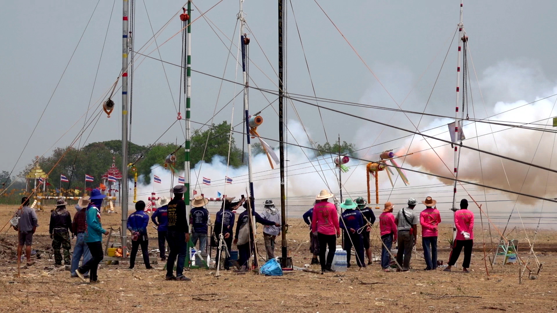 บรรยากาศงานสืบสานประเพณีจุดลูกหนูจังหวัดปทุมธานี มีขบวนแห่ลูกหนู จำนวน 22 คณะ ได้แก่ 1.กต.ตร.ปทุมธานี (บางพัง), 2.วัดบางคูวัดใน, 3.วัดศิริจันทาราม, 4.วัดกลางคลองสี่, 5.วัดบางหลวง, 6.วัดบางตะไนย์, 7.วัดโบสถ์, 8.วัดปัญจทายิกาวาส, 9.วัดป่ากลางทุ่ง, 10.วัดตลาดใต้, 11.วัดเพิ่มทาน ส่วนสาย , 12.วัดราษฎร์ศรัทธาราม, 13.วัดบางโพธิ์ใน, 14.วัดสะแก, 15.วัดสายไหม, 16.วัดสังลาน (ศิษย์หลวงปู่สุรินทร์), 17.วัดบ่อทอง, 18.วัดกลางคลองสาม, 19.วัดชินวราราม, 20.วัดแสวงสามัคคีธรรม, 21.วัดโสภาราม, 22.วัดบางกุฎีทอง โดยเริ่มขบวนมาจากองค์การบริหารส่วนจังหวัดปทุมธานีจนมาถึงลานอเนกประสงค์ตำบลเชียงรากใหญ่ (ริมถนน347) และมีการบวงสรวงตามประเพณีจุดจรวดมอญหรือที่เรียกกันว่าลูกหนูนับว่าเป็นประเพณีที่เก่าแก่อยู่คู่กับชนชาวมอญ โดยวิธีจุดลูกหนูจะใช้คบเพลิงไปจุดสายชนวนตรงท้ายตัวของลูกหนู เมื่อไฟลามเข้าไปถึงดินปืนก็จะเกิดระเบิดขับดันตัวลูกหนูให้วิ่งไปข้างหน้าอย่างแรง พอสุดลวดสลิงจะพุ่งเข้าชนปราสาททันที แล้วกรรมการจะให้คะแนนไว้ ของใครชนที่สำคัญก็จะได้คะแนนมากและได้รับชัยชนะไป สำหรับรางวัลในการจุดลูกหนู 1. พิชิตยอดปราสาทตกหล่นถึงพื้นดิน จำนวน 2 รางวัลๆ ละ 15,000 บาท พร้อมถ้วยรางวัลผู้พิชิตยอดปราสาท 2. พิชิตเสาปราสาทโดยเสาแต่ละต้นขาดหลุดจากกันหรือถอนจากพื้นดิน จำนวน 12 ต้นๆ ละ 1,000 บาท 3. พิชิตป้าย โดยลูกหนูโดนป้ายล้มถึงพื้นดิน จำนวน 200 ป้ายๆ ละ 200 บาท