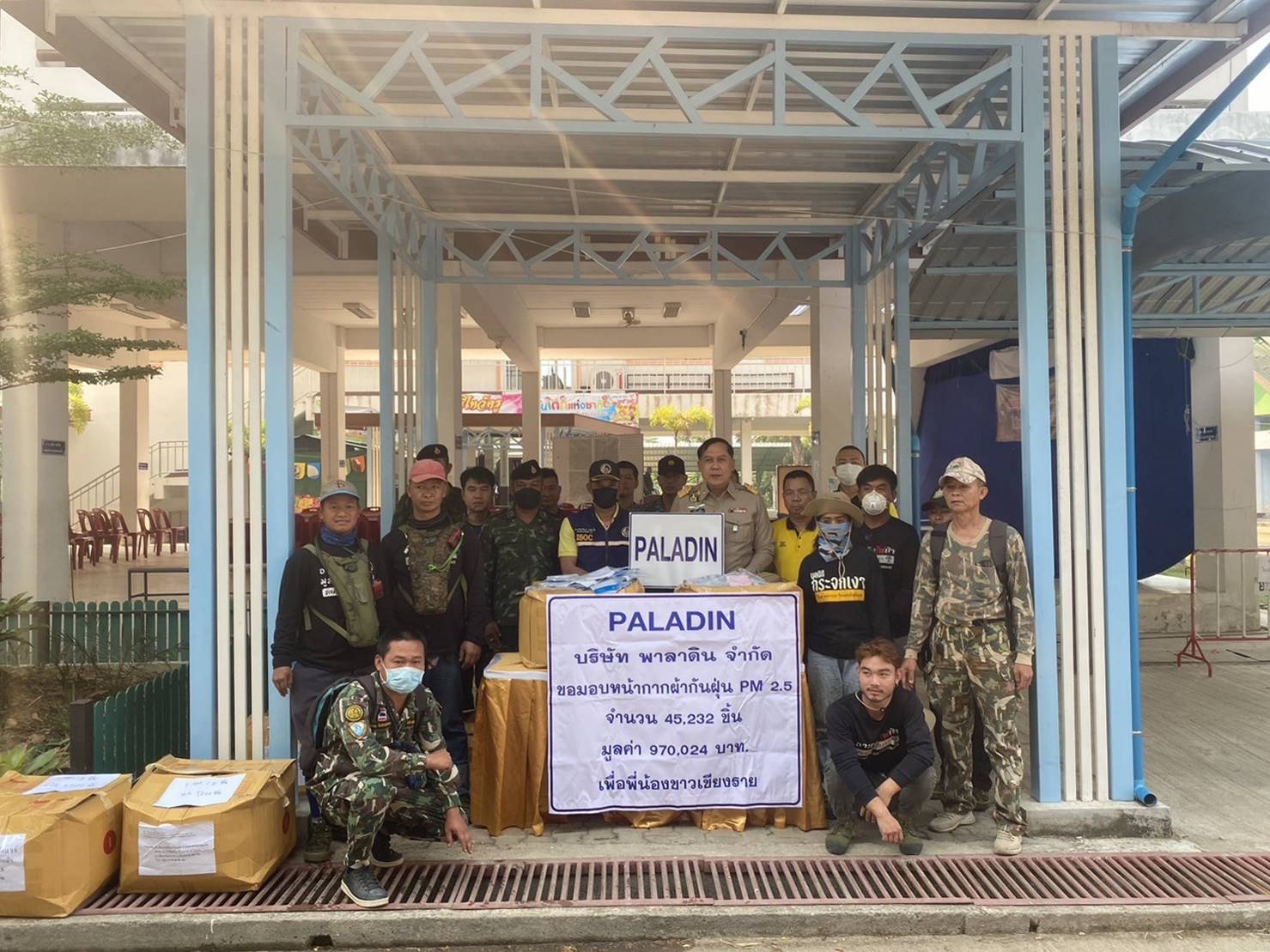 เมื่อวันที่ 3 เมษายน 2566 ที่ผ่านมา นายยุทธนา ศิลป์สรรค์วิชช์ ประธานเจ้าหน้าที่บริหาร บริษัท พาลาดิน เวิร์คแวร์ จำกัด พร้อมด้วยพนักงาน ได้ร่วมมอบหน้ากากผ้าป้องกันฝุ่นละออง PM 2.5 จำนวน 45,232 ชิ้น มูลค่า 970,024 บาท โดยมี นายวราดิศร อ่อนนุช รองผู้ว่าราชการจังหวัดเชียงราย เป็นผู้แทนรับมอบ เพื่อนำไปแจกจ่ายให้กับอาสาสมัครดับไฟป่า และประชาชนในพื้นที่ขาดแคลนที่ได้รับผลกระทบจากเหตุการณ์ในครั้งนี้