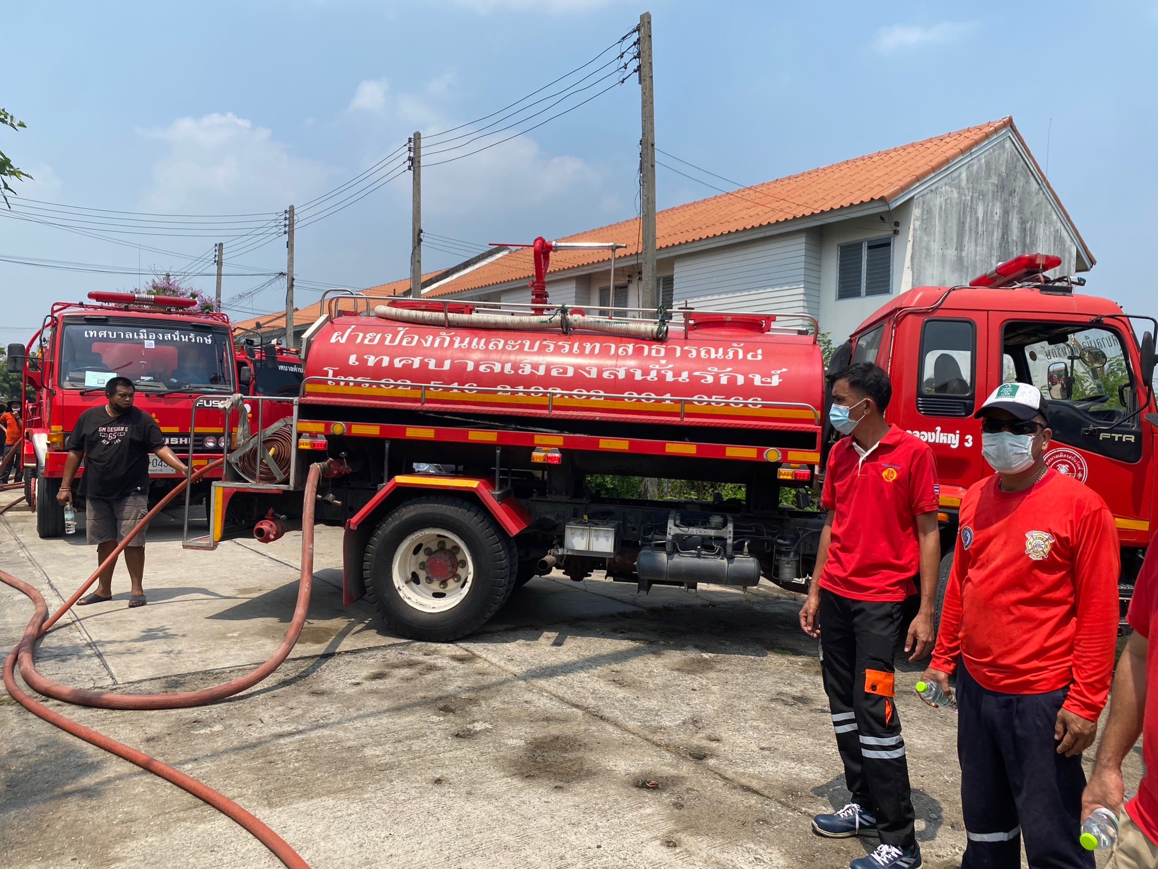 เมื่อ 13.30 น. วันที่ 4 เมษายน 2566 เจ้าหน้าที่ป้องกันบรรเทาสาธารณภัยเทศบาลเมืองสนั่นรักษ์ ได้รับแจ้งเหตุเพลิงไหมบริเวณโครงการบ้านเอื้ออาทร รังสิต คลอง 9(ธัญบุรี) จึงรุดเข้าที่เกิดเหตุพร้อมด้วยเจ้าหน้าที่ฝ่ายป้องกันบรรเทาสาธารณภัยเทศบาลเมืองสนั่นรักษ์ และหน่วยกู้ชีพเทศบาลเมืองสนั่นรักษ์ ที่เกิดเหตุเป็นบ้านทาวน์โฮม 2 ชั้น บ้านเลขที่ 200/370 ม.1 ต.บึงสนั่น อ.ธัญบุรี จ.ปทุมธานี ซึ่งบ้านหลังดังกล่าวเป็นหลังสุดท้ายที่ติดกำแพงในโครงการบ้านเอื้ออาทร คลอง9 บริเวณข้างกำแพงอีกฝั่งหนึ่งเป็นทุ่งนาและมีการเผาเศษฝางข้าวในที่ดิน เบื้องต้นเจ้าหน้าที่ป้องกันบรรเทาสาธารณภัยเทศบาลเมืองสนั่นรักษ์ได้นำรถดับเพลิง จำนวน 2 คัน มาฉีดพ่นน้ำบริเวณบ้านหลังเกิดเหตุและควบคุมเพลิงได้โดยใช้ระยะเวลาประมาณ 1 ชั่วโมง