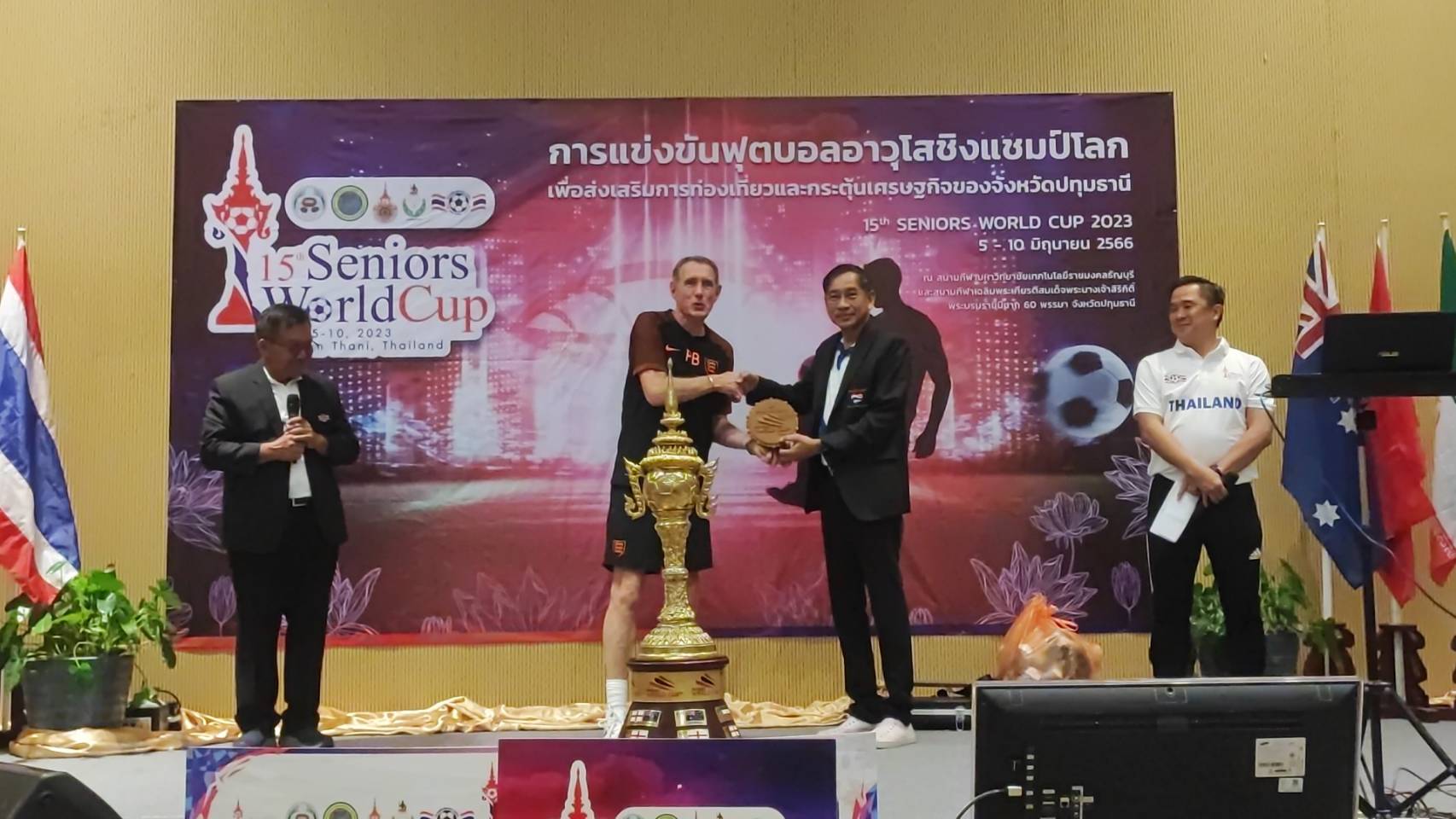 ด้านพล.ต.ท.คำรณวิทย์ ธูปกระจ่าง นายกองค์การบริหารส่วนจังหวัดปทุมธานี กล่าวว่าต้องเรียนว่าการแข่งขันฟุตบอลอาวุโสชิงแชมป์โลกมีมายาวนานถึง 15 ครั้งแล้วซึ่งมาชะงักไปในช่วงโควิดซึ่งณเวลาต้องขอขอบคุณนายเทพพิทักษ์ จันทร์สุเทพ นายกสมาคมกีฬาฟุตบอลอาวุโสไทย ที่จัดการแข่งขันฟุตบอลอาวุโสชิงแชมป์โลกครั้งนี้ขึ้นมา ซึ่งเป็นเรื่องที่ดีที่ใช้กีฬาเป็นสื่อให้คนรู้จักจังหวัดปทุมธานี ซึ่งมาประเทศไทยก็ต้องทานอาหารไทย เอาเงินมาใช้ในประเทศไทย มันก็ทำให้เศรษฐกิจของปทุมธานีมันดีขึ้น คนเขาก็รู้จักจังหวัดปทุมธานี ซึ่งการจัดแข่งขันครั้งนี้ใช้ระยะเวลาเพียงสั้นๆ แต่เราประทับใจที่ทั้ง 8 ประเทศส่งทีมฟุตบอลมาแข่งขันซึ่งทุกคนก็มีความสุขที่มาเยือนปทุมธานี ซึ่งครั้งต่อไปนั้น 8 ทีมยังน้อยไปเอามาซัก 15 ทีมจังหวัดปทุมธานียินดีต้อนรับทุกท่าน