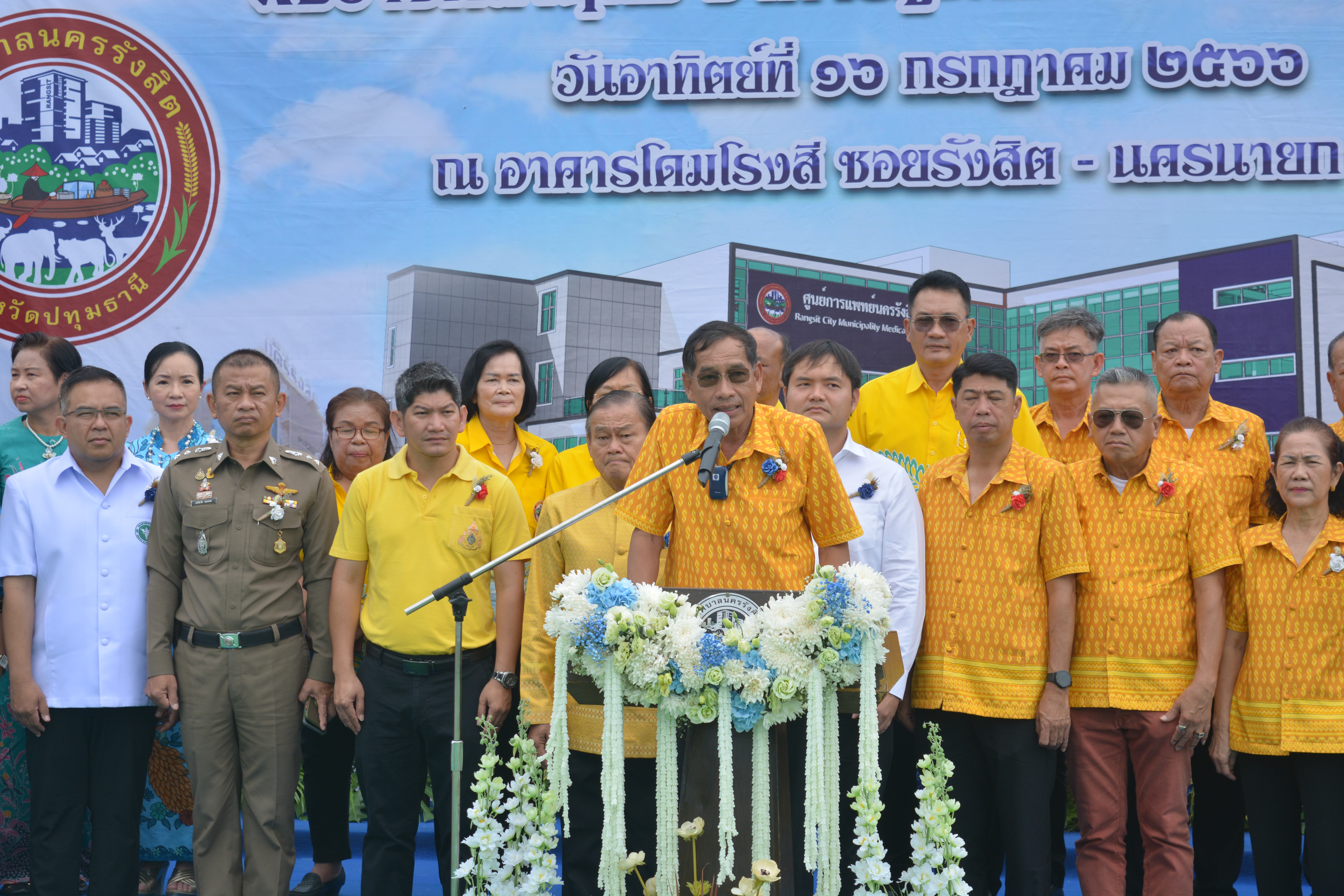 วันที่ 16 กรกฎาคม 2566 ที่ลานพิธีเทศบาลนครรังสิต ซอยรังสิต-นครนายก30 ตำบลประชาธิปัตย์ อำเภอเมือง จังหวัดปทุมธานี พล.ต.ท.คำรณวิทย์ ธูปกระจ่าง นายกองค์การบริหารส่วนจังหวัดปทุมธานี เป็นประธานพิธีวางศิลาฤกษ์ศูนย์การแพทย์นครรังสิต มีร้อยตำรวจเอก ดร.ตรีลุพธ์ ธูปกระจ่าง นายกเทศมนตรีนครรังสิต กล่าวรายงาน พร้อมคณะผู้บริหาร หัวหน้าส่วนราชการ ผู้แทนชุมชน และประชาชนร่วมพิธีกว่า 500 คน