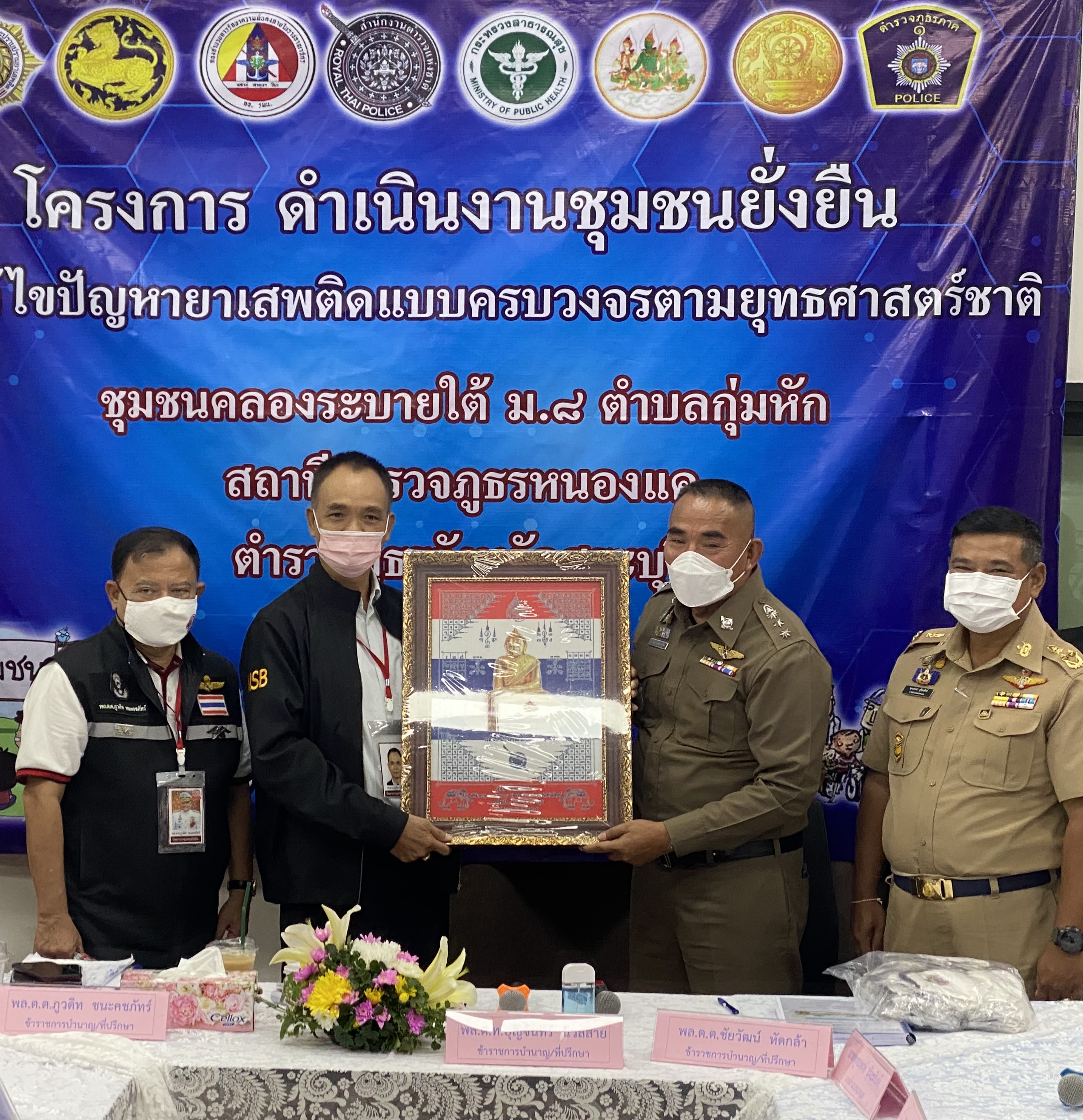 วันนี้ 6 ก.ย.2565 เวลา 09.00 น. ณ อาคารสิงห์สเตชั่น ต.กุ่มหัก อ.หนองแค จว.สระบุรี พล.ต.ท.บุญจันทร์ นวลสาย ข้าราชการบำนาญ/ที่ปรึกษาสำนักงานตำรวจแห่งชาติด้านปราบปรามยาเสพติดโครงการชุมชนยั่งยืนฯ พร้อมด้วย พล.ต.ต.ชัยวัฒน์ หัดกล้า / พล.ต.ต.ภุวดิชท ชนะคชภัทร ข้าราชการบำนาญฯ ซึ่งเป็นคณะทำงานของ พล.ต.ท.ภาณุรัตน์ หลักบุญ รองจเรตำรวจฯ เดินทางมาตรวจเยี่ยมผลของการปฏิบัติงานชุมชนยั่งยืนแก้ไขปัญหายาเสพติดแบบครบวงจรตามยุทธศาสตร์ชาติ ของ สภ.หนองแค ภ.จว.สระบุรี โดยมี พล.ต.ต.ชยานนท์ มีสติ ผบก.ภ.จว.สระบุรี / พ.ต.อ.สิงห์ สิงห์เดช รอง ผบก.ภ.จว.สระบุรี / พ.ต.อ.สถิตย์ สังข์ประไพ ผกก.สภ.หนองแค และเจ้าหน้าที่ตำรวจในสังกัด สภ.หนองแค / เจ้าหน้าที่ชุดชุมชนยั่งยืนฯ สภ.หนองแค / นายพุทธพงษฺ์ สุริยะสิงห์ นายอำเภอหนองแค / นายทินกร บุญสาน นายก อบต.หนองโรง นายพัฒน์ธนันตร์ นงค์เยาวน์ นายก อบต.กุ่มหัก / นางศรีภัทรา ร่มพุฒตาล ผอ.โรงพยาบาลส่งเสริมสุขภาพตำบลหนองโรง พร้อมด้วยเจ้าหน้าที่สาธารณะสุขฯ ผู้นำชุมชนใน ต.กุ่มหัก ต.หนองโรง ชาวบ้านในพื้นที่รวมถึง ผู้เข้าร่วมบำบัดตามโครงการชุมชนยั่งยืน ร่วมให้การต้อนรับ
