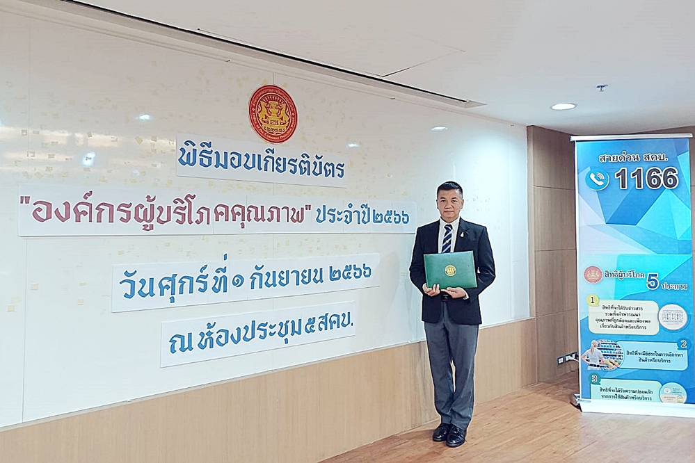 ณ ห้องประชุม 5 สำนักงานคณะกรรมการคุ้มครองผู้บริโภค นายธสรณ์อัฑฒ์ ธนิทธิพันธ์ เลขาธิการคณะกรรมการคุ้มครองผู้บริโภค(สคบ.) เป็นประธานในพิธีมอบเกียรติบัตรองค์กรผู้บริโภคคุณภาพ ประจำปี พ.ศ. 2566 ซึ่งเครือข่ายคุ้มครองผู้บริโภคไทย เป็นหนึ่งองค์กรผู้บริโภคคุณภาพในจำนวน 8 องค์กร