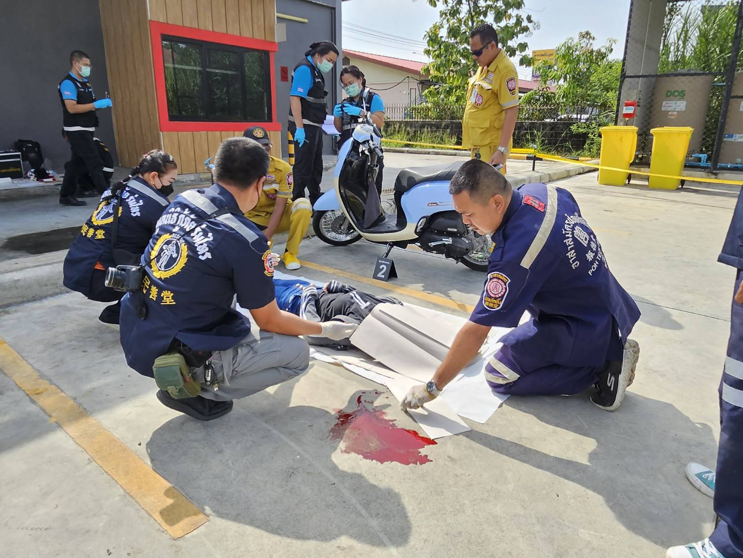 ที่เกิดเหตุที่แรกอยู่บริเวณลาดจอดรถจักรยานยนต์ของร้าน KFC ติดกับซอยหทัยราษฏร์37 พบศพนางสาวกัญญารัตน์ สารอินทร์ อายุ 25 ปี พนักงานร้านKFC ถูกยิงด้วยปืนไม่ทราบขนาดบริเวณศีรษะ 1 นัดนอนจมกองเลือดในบริเวณดังกล่าว ข้างศพพบรถจักรยานยนต์ยี่ห้อฮอนด้ารุ่นสกู้ปปี้ สีฟ้าไม่ติดแผ่นป้ายทะเบียน จากการสอบถามผู้อยู่ในเหตุการณ์ซึ่งเป็นเพื่อนร่วมงานผู้เสียชีวิต ได้เล่าเพียงสั้นๆเพราะอยู่ในอาการตกใจ ว่า ผู้เสียชีวิตได้เคยเล่าว่าพยายามเลิกรากับแฟนหนุ่มซึ่งเป็นผู้ก่อเหตุ เนื่องจาก ผู้เสียชีวิตมีแฟนใหม่ แต่ตนเองก็ยังเห็นผู้ก่อเหตุขับรถจักรยานยนต์มาส่งอยู่บ่อยครั้ง และไม่เคยมีการทะเลาะเบาะแว้งแต่อย่างใด จนวันนี้ประมาณ 07.30 น. ตนเองได้ยินเสียงปืนดังขึ้นหนึ่งนัด บริเวณข้างร้านจึงออกมาดูได้พบว่า นางสาวกัญญารัตน์ ถูกยิงเสียชีวิตไปแล้ว