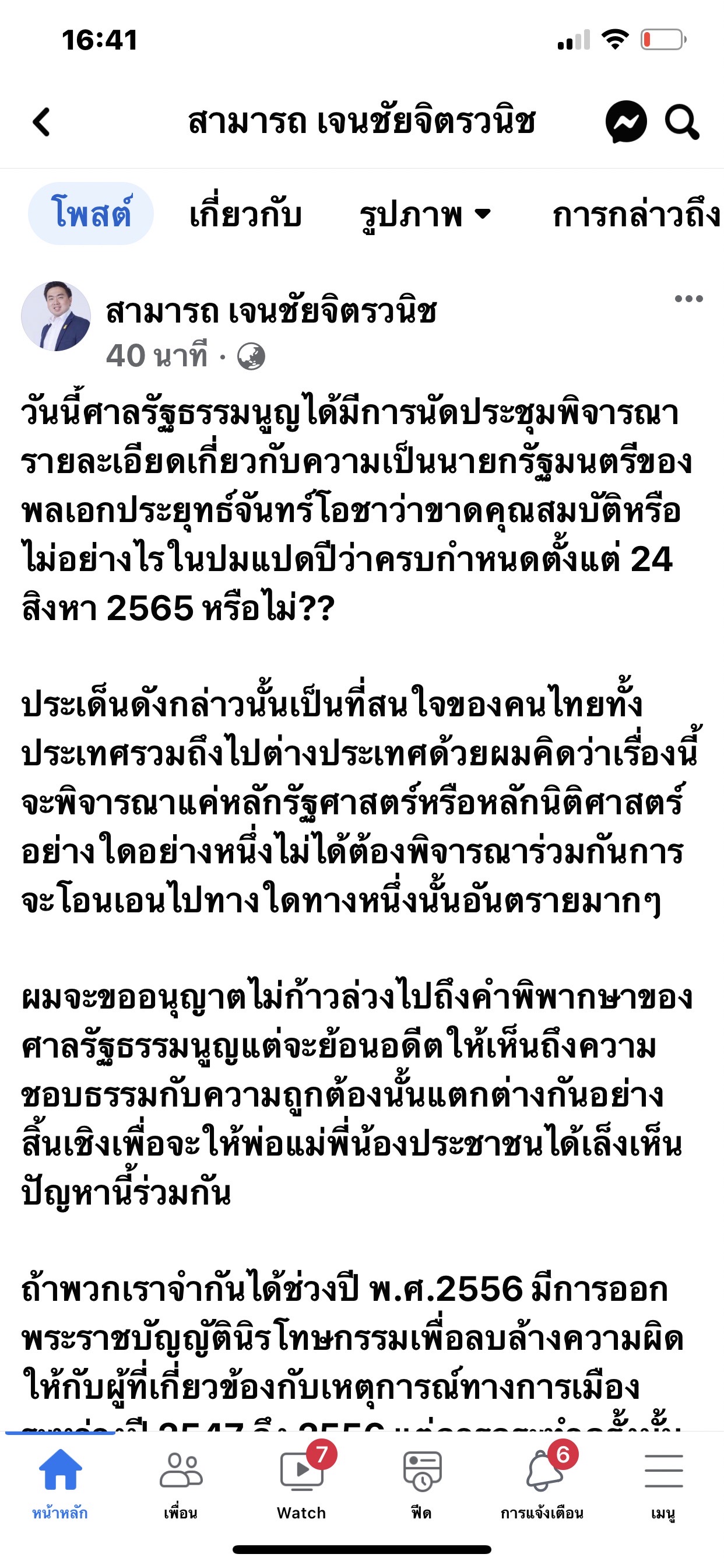 นาย สามารถ เจนชัยจิตรวนิช อดีตผู้ช่วยรัฐมนตรีว่าการกระทรวงยุติธรรม ได้โพสต์เฟสบุ๊คส่วนตัว แสดงความคิดเห็นบิ๊กตู่ ขาดคุณสมบัตินั่งนายกฯต่อหรือไม่ในปม8ปี โดยเนื้อหากล่าวว่า วันนี้ศาลรัฐธรรมนูญได้มีการนัดประชุมพิจารณารายละเอียดเกี่ยวกับความเป็นนายกรัฐมนตรีของ พลเอกประยุทธ์ จันทร์โอชา ว่าขาดคุณสมบัติหรือไม่อย่างไรในปมแปดปีว่าครบกำหนดตั้งแต่ 24 สิงหา 2565 หรือไม่??