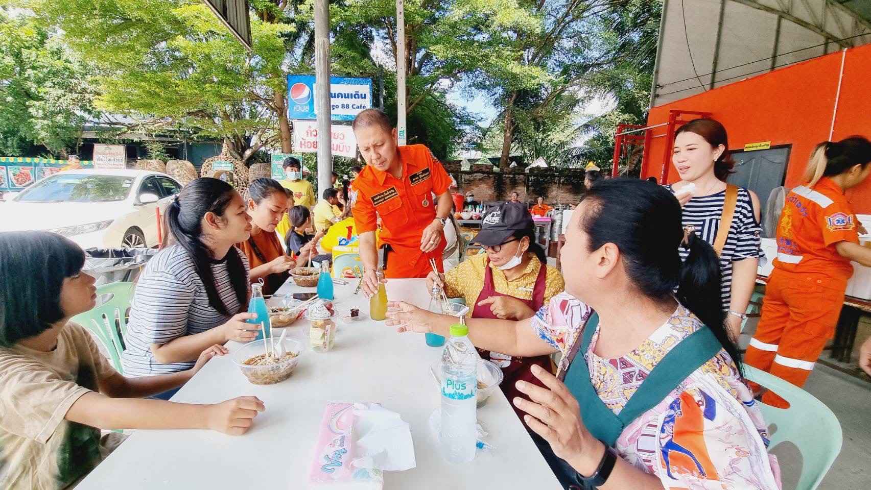 โดยนายกโก๊ะ ท่าทราย นายกสมาคมกู้ชีพบัวเพชร ร่วมกับประชาชนจิตอาสาทำอาหารแจกจ่ายให้กับประชาชนฟรี เนื่องในวันวันนวมินทรมหาราช น้อมรำลึกถึงพระมหากรุณาธิคุณ ในหลวงรัชกาลที่9 ที่ทรงปฏิบัติพระราชกรณียกิจ เพื่อบำบัดทุกข์บำรุงสุขแก่ปวงชนชาวไทยมาโดยตลอด ได้นำก๋วยเตี๋ยวนำมาตั้งเป็นโรงทานแจกให้แก่ประชาชนที่ผ่านไปมาได้รับประทาน ได้รับการตอบรับเป็นอย่างดี มีประชาชนเข้ามารับประทานอาหารกันเป็นจำนวนมาก ซึ่งหน่วยอาสากู้ชีพบัวเพชรและประชาชนจิตอาสาต่างรู้สึกภูมิใจเป็นอย่างยิ่งที่ได้ร่วมกันทำความดีถวายพ่อหลวงในครั้งนี้ แม้จะเป็นเรื่องเล็กๆ น้อยๆ แต่ก็อยากให้คนไทยทุกคนที่สามารถแบ่งปัน หรือทำความดี ทำให้บ้านเมืองเรามีความสงบสุขมากยิ่งขึ้น.