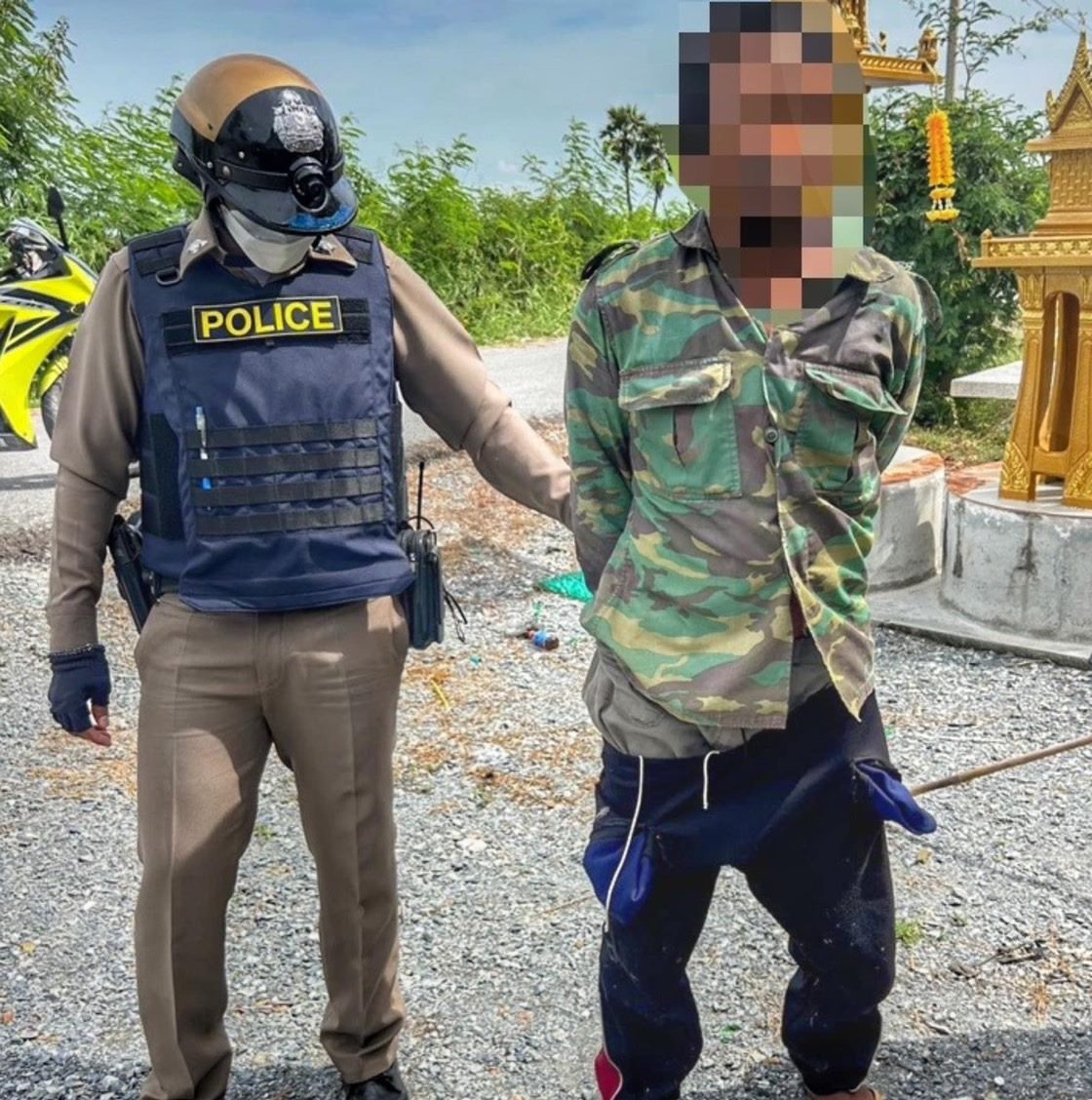 พ.ต.อ. เอกชัย ศรีเมือง ผกก.สภ.ดอนเจดีย์ กล่าวว่า การจับกุมสืบเนื่องจากตนเองได้กำชับผู้ใต้บังคับบัญชาทุกนาย ให้ปฏิบัติตามนโยบายเน้นหนักของ พล.ต.อ.ต่อศักดิ์ สุขวิมล ผบ.ตร. ซึ่งหนึ่งในนั้นในหัวข้อเน้นหนักในเรื่องยาเสพติดว่าด้วย แก้ไขปัญหายาเสพติดในทุกมิติอย่างเป็นระบบ / ปราบปรามผู้ผลิตและผู้ค้ายาเสพติดโดยใช้มาตรการทางกฎหมายอย่างจริงจังและเด็ดขาด / พิ่มประสิทธิภาพในการสกัดกั้นการลำเลียงยาเสพติดตามแนวชายแดน หรือใช้ประเทศไทยเป็นทางผ่าน / ประสานกับหน่วยงานที่เกี่ยวข้องใช้มาตรการยึดทรัพย์ เพื่อตัดวงจรการค้ายาเสพติด / ใช้กลไกความร่วมมือของชุมชน ตามแนวทางโครงการชุมชนยั่งยืนเพื่อแก้ไขปัญหายาเสพติดอย่างครบวงจร ตามยุทธศาสตร์ชาติโดยร่วมกับหน่วยงานที่เกี่ยวข้อง เพื่อเข้าร่วมดำเนินการยึดหลักการ เปลี่ยนผู้เสพเป็นผู้ป่วย สนับสนุนให้ผู้เสพเข้ารับการบำบัดรักษาอย่างมีประสิทธิภาพและทั่วถึง เป็นต้น ทางเจ้าหน้าที่ฝ่ายป้องกันปราบปราม ในชุดปฏิบัติการได้ออกตรวจตราป้องกันเหตุ และได้เห็นชายต้องสงสัยคนดังกล่าวจึงขอตรวจค้นนำไปสู่การจับกุมดังข้างต้นในที่สุด