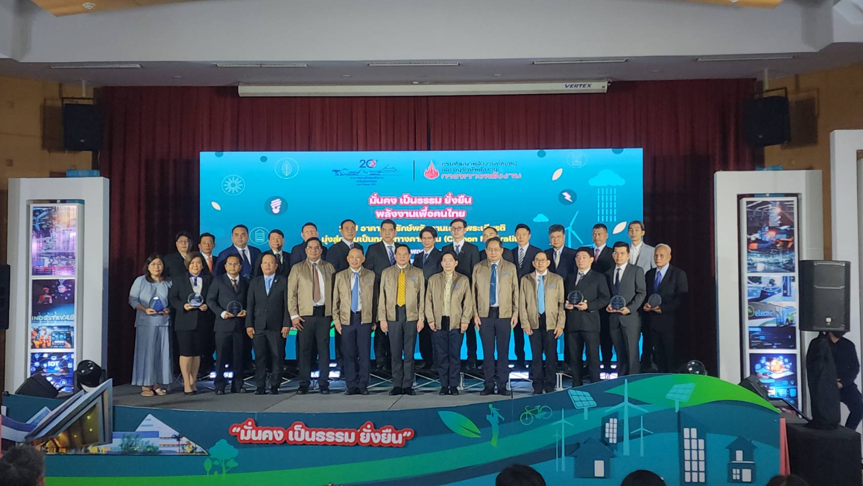 โดย นายโสภณ ได้กล่าวเพิ่มเติมว่า อาคารแห่งนี้ใด้ผ่านมาตรฐานการจัดการพลังงาน ISO 50001 ซึ่งเป็นมาตรฐานระดับสากล ให้แก่โรงงานและอาคารควบคุมในการจัดการพลังงาน และนับเป็นอาคารภาครัฐกลุ่มแรกที่จะได้รับรองมาตรฐานนี้ โดยตลอดเวลา 20 ปี ที่ผ่านมา พพ. ได้รับความร่วมมือจากผู้ประกอบการทั้งภาครัฐและเอกชน ตลอดจนภาคประชาชน ที่ให้ความสำคัญ กับการพัฒนาพลังงานทดแทนและอนุรักษ์พลังงาน แสดงให้เห็นถึงศักยภาพ ความสามารถในการพัฒนาพลังงานของประเทศได้เป็นดี พพ. จึงได้มอบรางวัลให้กับสถานประกอบการที่มีผลการประหยัดพลังงานดีเด่น และได้ดำเนินการจัด