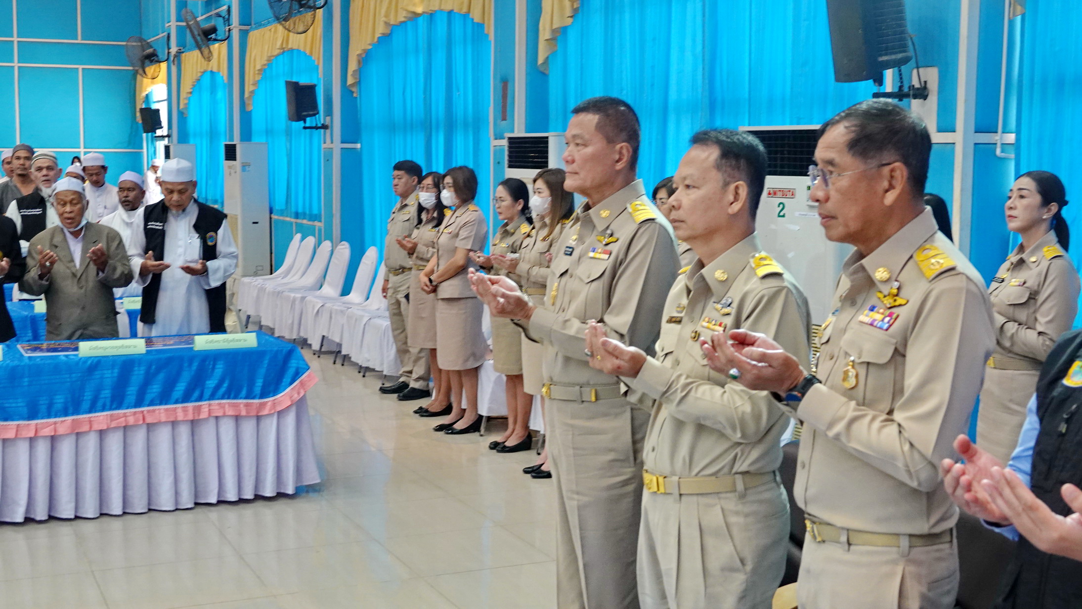 นายชัยยะ เซ็ก ผู้แทนครูสอนศาสนาอิสลามภาคบังคับ เขต 1 ปทุมธานี กล่าวว่า ผมตัวแทนครูฟัรดูอีน เขตที่ 1 ขอขอบคุณ ท่านนายกองค์การบริหารส่วนจังหวัดปทุมธานี มีความเมตตามีความกรุณาต่อพวกเรา ที่สนับสนุนเงินเป็นค่าตอบแทนให้กับครูสอนศาสนา ซึ่งไม่มีหน้าประวัติศาสตร์ใดในจังหวัดปทุมธานี ที่ผู้บริหารกล้าตัดสินใจและให้การสนับสนุนกับพวกเรา อย่างน้อยเงินที่องค์การบริหารส่วนจังหวัดปทุมธานีให้กับพวกเราเป็นค่าใช้จ่ายในครอบครัวของเรา ต้องขอขอบคุณท่านนายกฯ แทนครูสอนศาสนาทุกๆท่าน และต้องขอบคุณท่านนายกฯ ที่อุดหนุนงบประมาณสร้างโรงเรียนบูรณาการวิถีอิสลาม ซึ่งเป็นโรงเรียนที่จะมีการเรียนการสอนเหมือนกับโรงเรียนท่าอิฐ ซึ่งปีที่แล้วนายกให้งบประมาณเพื่อไปดูรายละเอียดการสร้างอาคารเรียนเหมือนเหมือนที่ 3จังหวัดชายแดนภาคใต้ ผมกลับมาคุยประชุมกับทีมงานที่จะสร้างโรงเรียนนี้ ด้วยงบประมาณสนับสนุนจากองค์การบริหารส่วนจังหวัดปทุมธานี ทางเราได้ดำเนินการแล้ว 5,000,000 บาท และรอการสนับสนุนจากองค์การบริหารส่วนจังหวัดปทุมธานี 6,000,000 บาท จะเป็นโรงเรียนวิถีอิสลานลูกหลานของเราในจังหวัดปทุมธานีจะได้เรียนในโรงเรียนหลังนี้จากงบประมาณที่ท่านนายกและสนับสนุนให้ และมีความตั้งใจจะเปิดโรงเรียนหลังนี้ก่อนท่านนายกฯ จะหมดวาระการเป็นนายกองค์การบริหารส่วนจังหวัดปทุมธานี