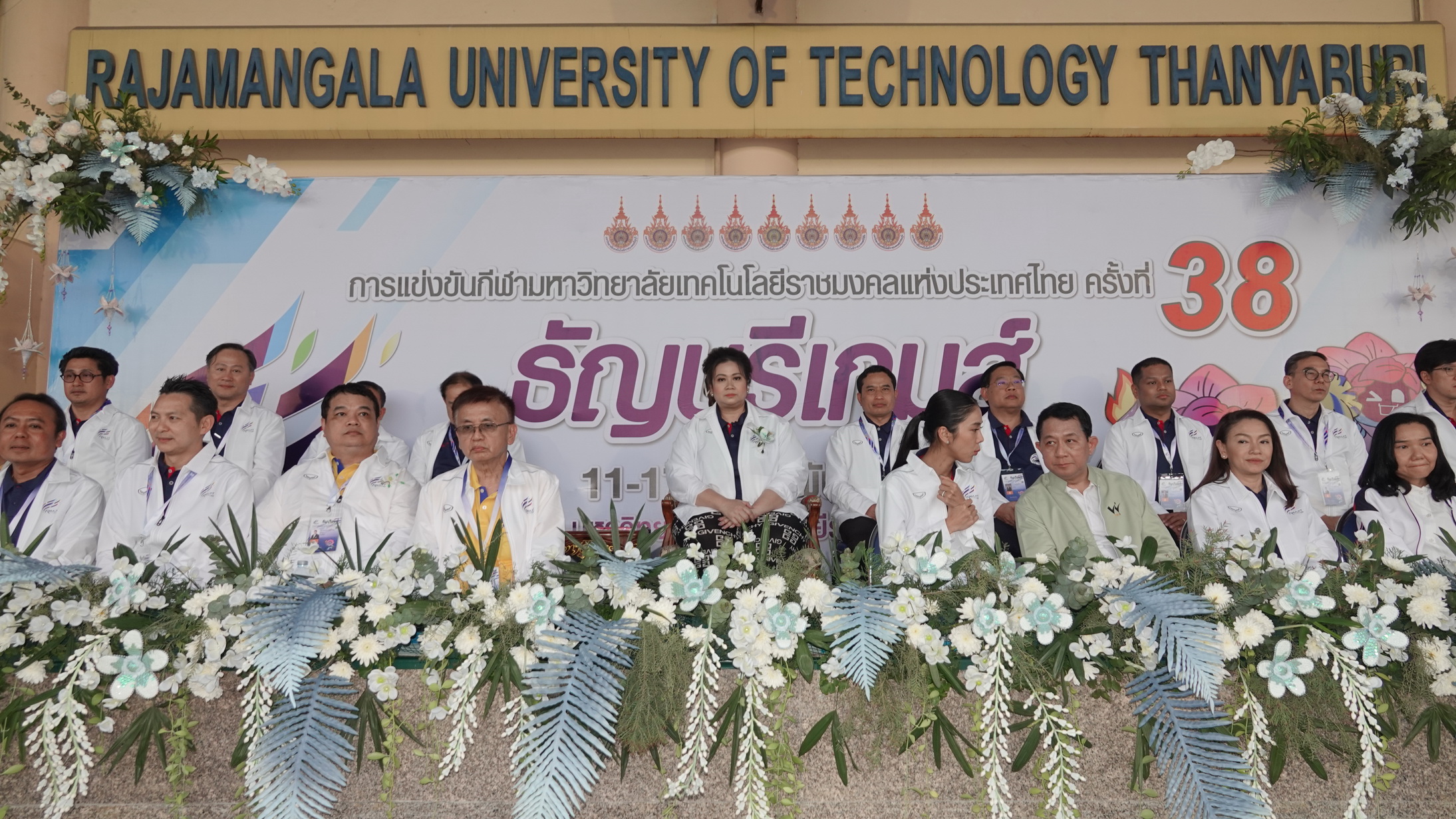 วันที่ 12 กุมภาพันธ์ 2567 ที่สนามกีฬากลาง มหาวิทยาลัยเทคโนโลยีราชมงคลธัญบุรี จังหวัดปทุมธานี นางสาวศุภมาส อิศรภักดี รัฐมนตรีว่าการกระทรวงการอุดมศึกษา วิทยาศาสตร์ วิจัยและนวัตกรรม เป็นประธานในพิธีเปิด การแข่งขันกีฬามหาวิทยาลัยเทคโนโลยีราชมงคล แห่งประเทศไทย ครั้งที่ 38 ธัญบุรีเกมส์ “เชื่อมราชมงคลด้วยไมตรี เชื่อมสามัคคีด้วยกีฬา” ชิงถ้วยพระราชทานสมเด็จพระกนิษฐาธิราชเจ้า กรมสมเด็จพระเทพรัตนราชสุดาฯ สยามบรมราชกุมารี ระหว่างวันที่ 11 – 17 กุมภาพันธ์ 2567 โดยมี รองศาสตราจารย์ ดร.สมหมาย ผิวสอาด อธิการบดีมหาวิทยาลัยเทคโนโลยีราชมงคลธัญบุรี กล่าวรายงานวัตถุประสงค์ในการจัดงาน พร้อมด้วยอธิการบดี ผู้บริหาร คณาจารย์ ทั้ง 9 มทร. ให้การต้อนรับ