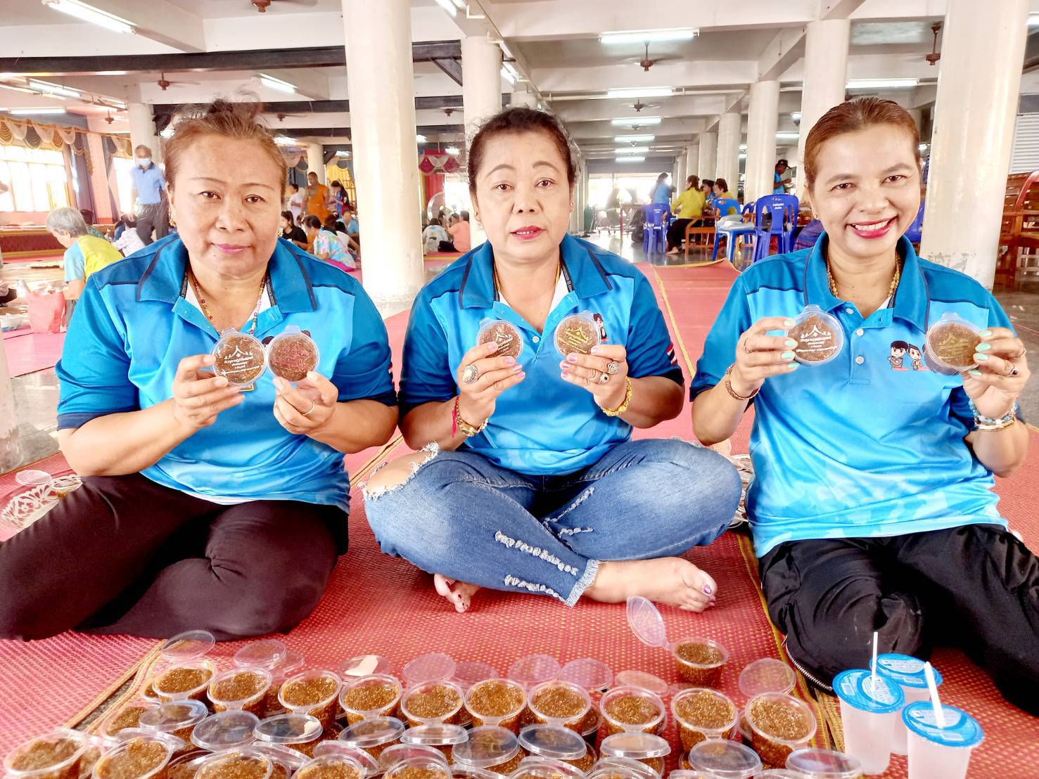 บรรยากาศพิธีกวนข้าวทิพย์ จำนวน 11 กระทะใหญ่ในงานบุญประจำปี ครบรอบ 4 ปี วันมรณภาพพระครูปทุมธีรคุณ อดีตเจ้าอาวาสวัดสุราษฎร์รังสรรค์หรือชาวบ้านเรียกวัดดอนมะกรูด มีพระปลัดจักรกฤษณ์ สุทธิมโน เจ้าอาวาสฯ พร้อมคณะสงฆ์ร่วมด้วยช่วยกัน และร่วมกันบรรจุข้าวทิพย์เข้าลงในกระปุกพร้อมติดผนึกกล่องให้แน่นหนา ต่างคนต่างทำต่างคนต่างร่วมไม้ร่วมมือกันจนเสร็จสิ้น หลังจากบรรจุข้าวทิพย์ลงกล่องเสร็จสิ้นแล้ว จากนั้นได้นำไปที่กองอำนวยการเพื่อจำหน่ายให้กับพี่น้องประชาชนที่มาร่วมทำบุญและมาเที่ยวบุญประจำปี ใน 1 ถุงมี 4 กระปุกราคา 100 บาท