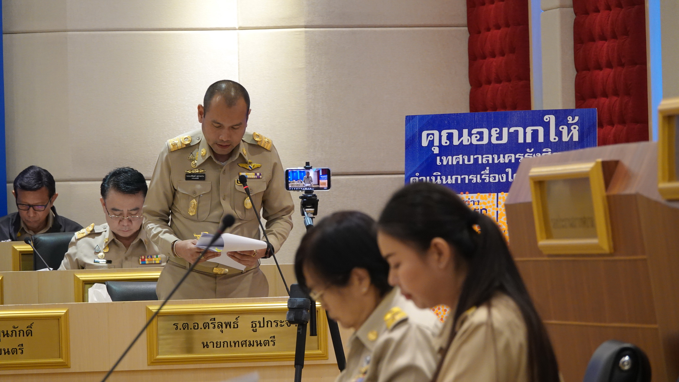 ร้อยตำรวจเอก ดร.ตรีลุพธ์ ธูปกระจ่าง นายกเทศมนตรีนครรังสิต กล่าวว่า ในการบริหารผมได้มุ่งเน้นทำเพื่อพี่น้องประชาชนในสิ่งต่าง ๆ และวาระต่าง ๆ ที่เสนอไปในสภาฯ ได้ผ่าน 13 วาระ ไม่ผ่าน 8 วาระ เป็นโครงการที่เกี่ยวกับระบบสาธารณูปโภคในเทศบาลนครรังสิต เป็นสิ่งที่จำเป็นต่อพี่น้องประชาชนอย่างเร่งด่วน โดยเฉพาะในเรื่องของความสว่างในพื้นที่ และเรื่องของกล้องวงจรปิด เราก็คงต้องฝากเตือนในเรื่องขอการระมัดระวังในการใช้ชีวิต การจราจรการขับรถ ส่วนในเรื่องของฝาทอที่เราต้องเปลี่ยนแปลงเพื่อการระบายน้ำ ต้องเรียกว่าผมยังมีความตั้งใจทำเพื่อพี่น้องประชาชน โดยส่วนตัวทำเพื่อทุกอย่างเพื่อชาวรังสิต พูดแล้วน้ำตาคลอ ขอขอบคุณที่พี่น้องชาวรังสิตมาให้กำลังใจ